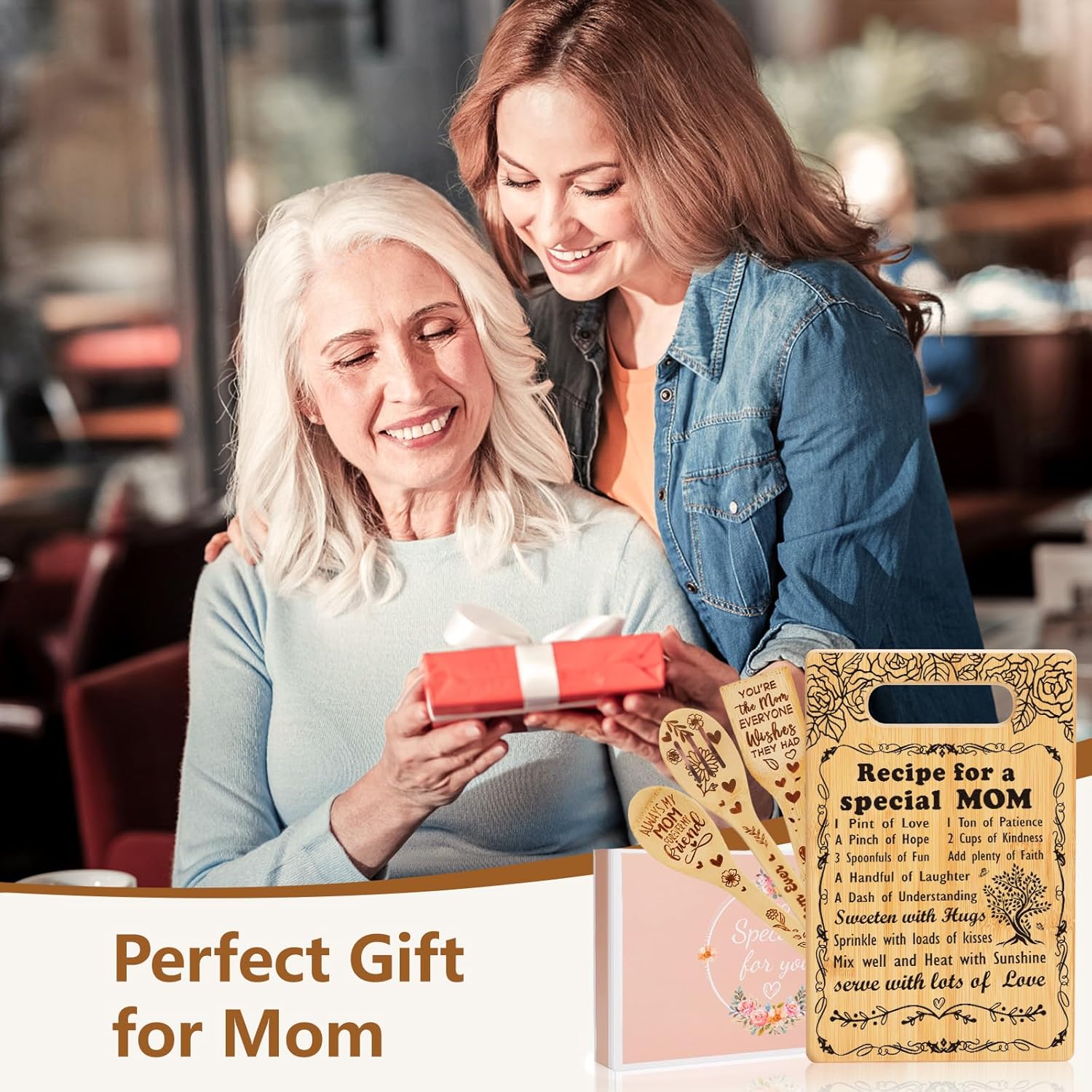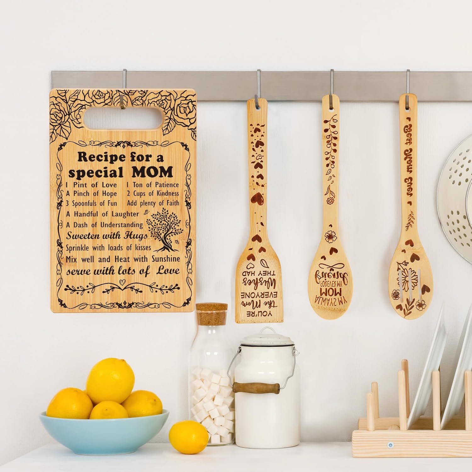 【High Quality】: The cutting board and spoon are made of renewable resource bamboo, Easy clean, can wash with water and dry with a rag. You can send the cutting board set as mom funny gifts, sweet and cute gift to your mom, family and friends on all kinds of festivals. Perfect for Mothers Day, Anniversary, Holiday, Wedding, Retirement, Thanksgiving, Valentines Day or a regular day