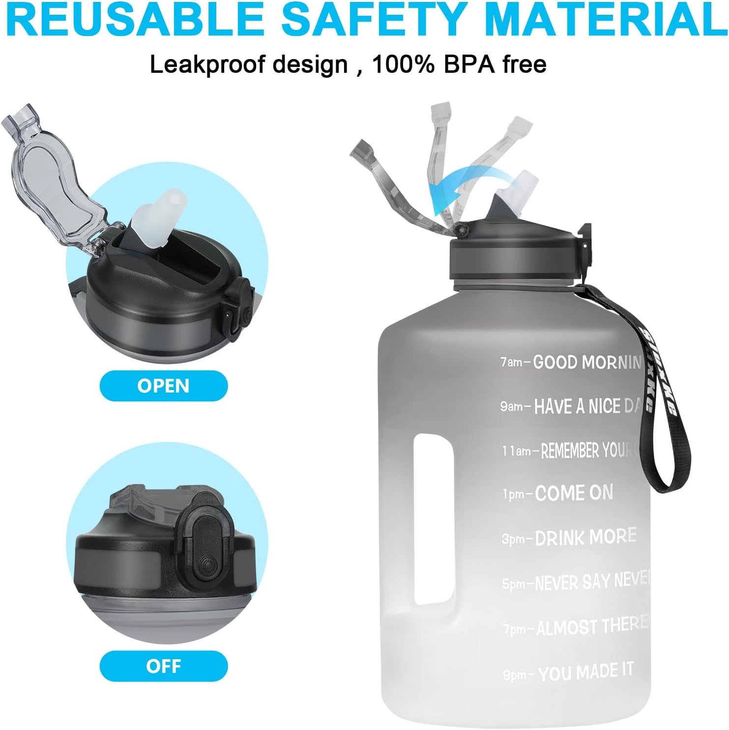 🍋WORRY-FREE WARRANTY: Our daily water intake bottle supply a money-back and free replacement in 30 days, our friendly customer service professionals are always standing by our gym water bottle. any problems after receiving the water jug or in use, contact us for a free replacement without having to return your original. Don’t delay, get yours today! ( NOTE: Do Not Drop Bottle, Not Dishwasher Safe, and Not Hot Liquid.)
