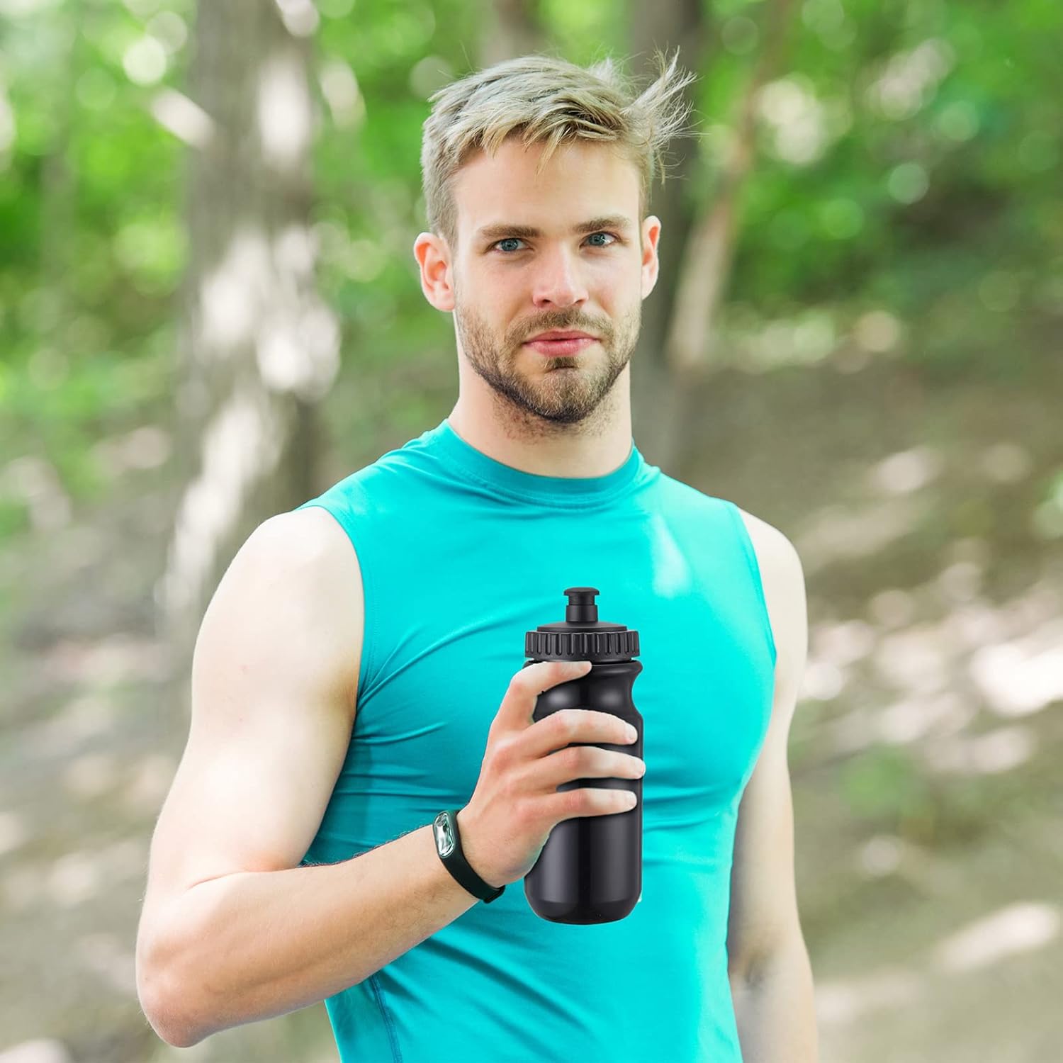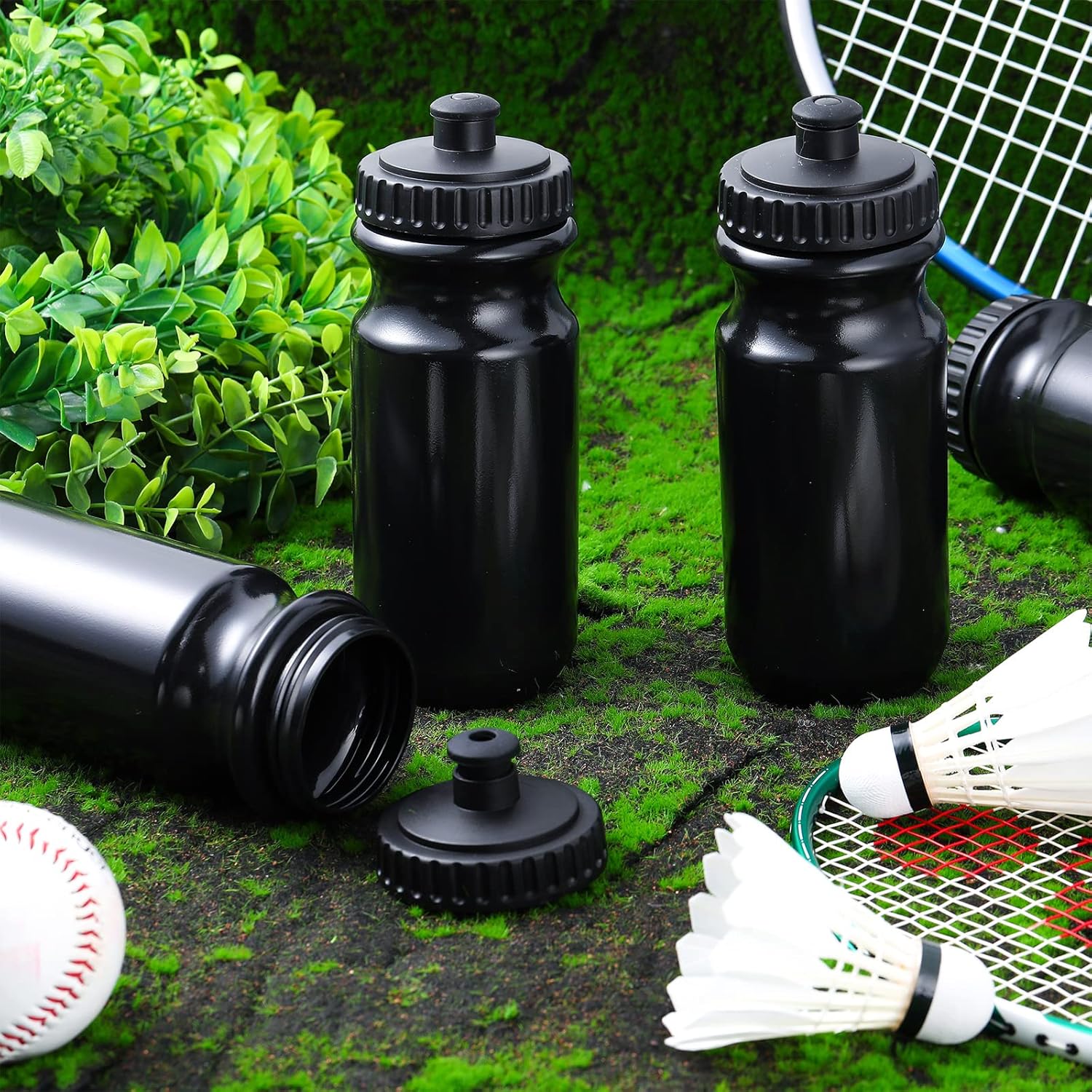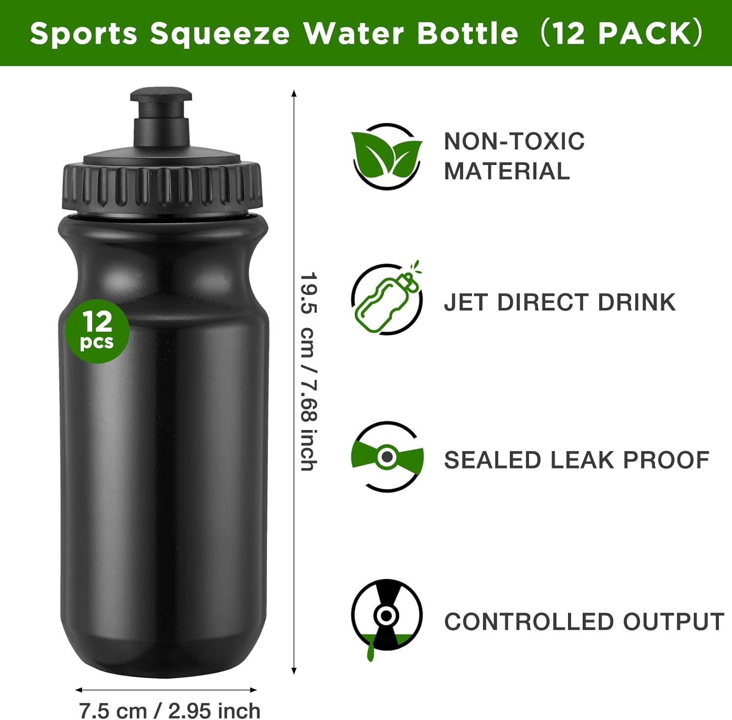 12 Pack Sports Squeeze Water Bottles 20 oz with Easy Open Push/Pull Cap Leak Proof BPA Free Plastic Water Bottles for Bike Cycling Fitness Yoga Camping Workout Outdoor(Black)