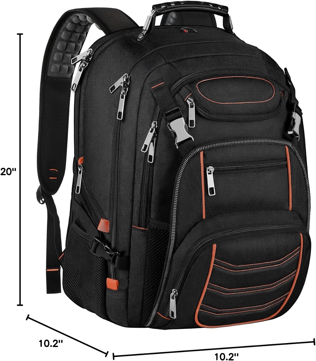 Travel And Extra Large:Size of 21.2*15.5*11.5 inch.Capacity:60L,padded laptop compartment hold for 19,18.4,18,17.3,17,15.6,15 inch laptops /computers backpack,Largest main compartment hold for 3-4 days travel clothing.Many hidden pockets can accommodate lots of travel accessories,stationery, personal toiletries,side Zipper pocket for Easy access essentials,Heavy duty backpack made from polyester nylon fabric for better TEAR.