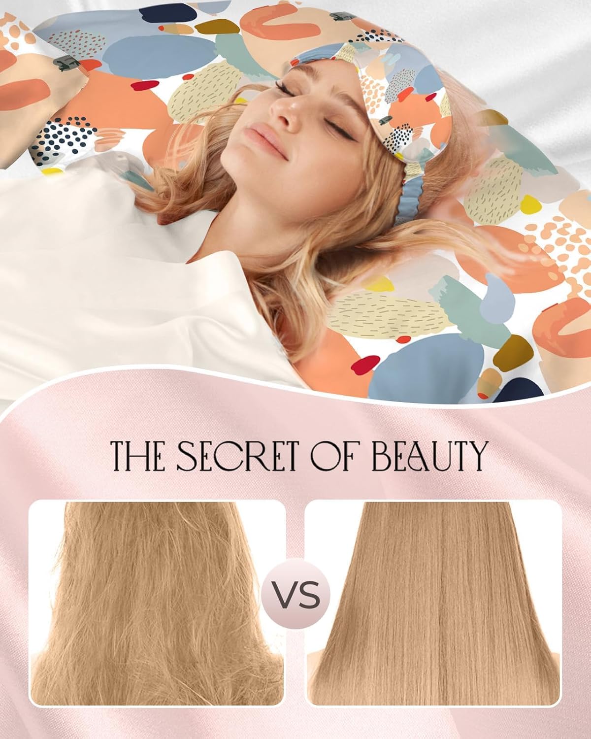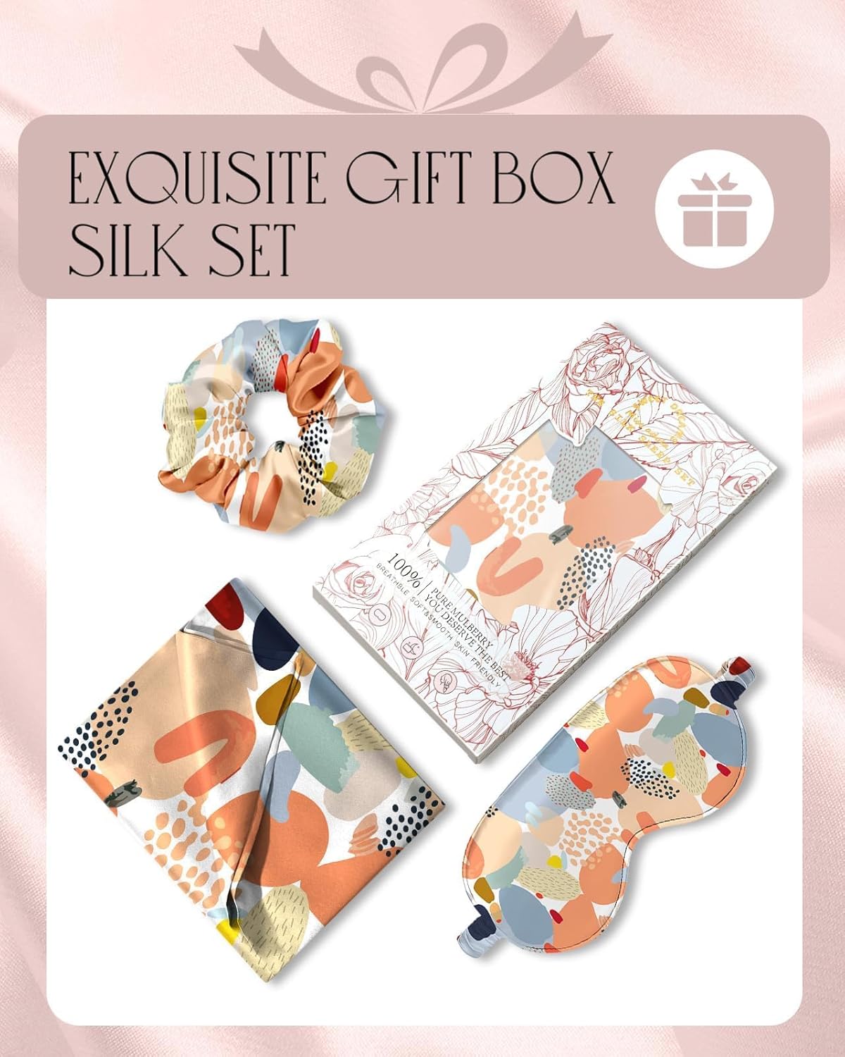 1Pack Mulberry Silk Pillow Case for Hair and Skin Standard 26″x20″ Silk Pillowcase with Eye Mask & Scrunchie Soft Silk Pillowcase Sleeping for Women, Wife, Female – Abstract
