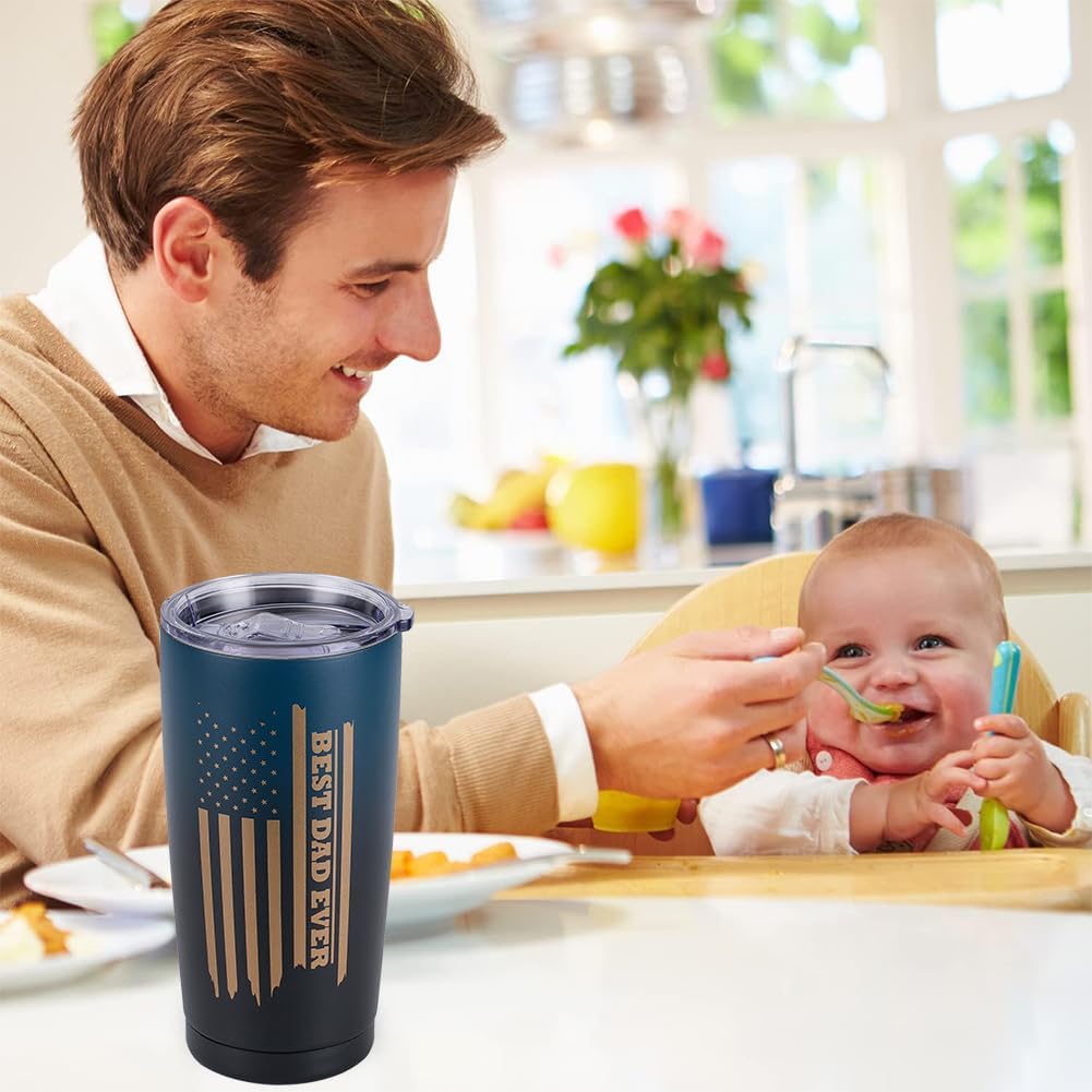 20 OZ Best Dad Ever Stainless Steel Tumbler: Unique Gift Idea for Men, Husband, Father – Christmas, Anniversary, Birthday; Eco-Friendly, Spill-Proof & Insulated for Perfect Temperature