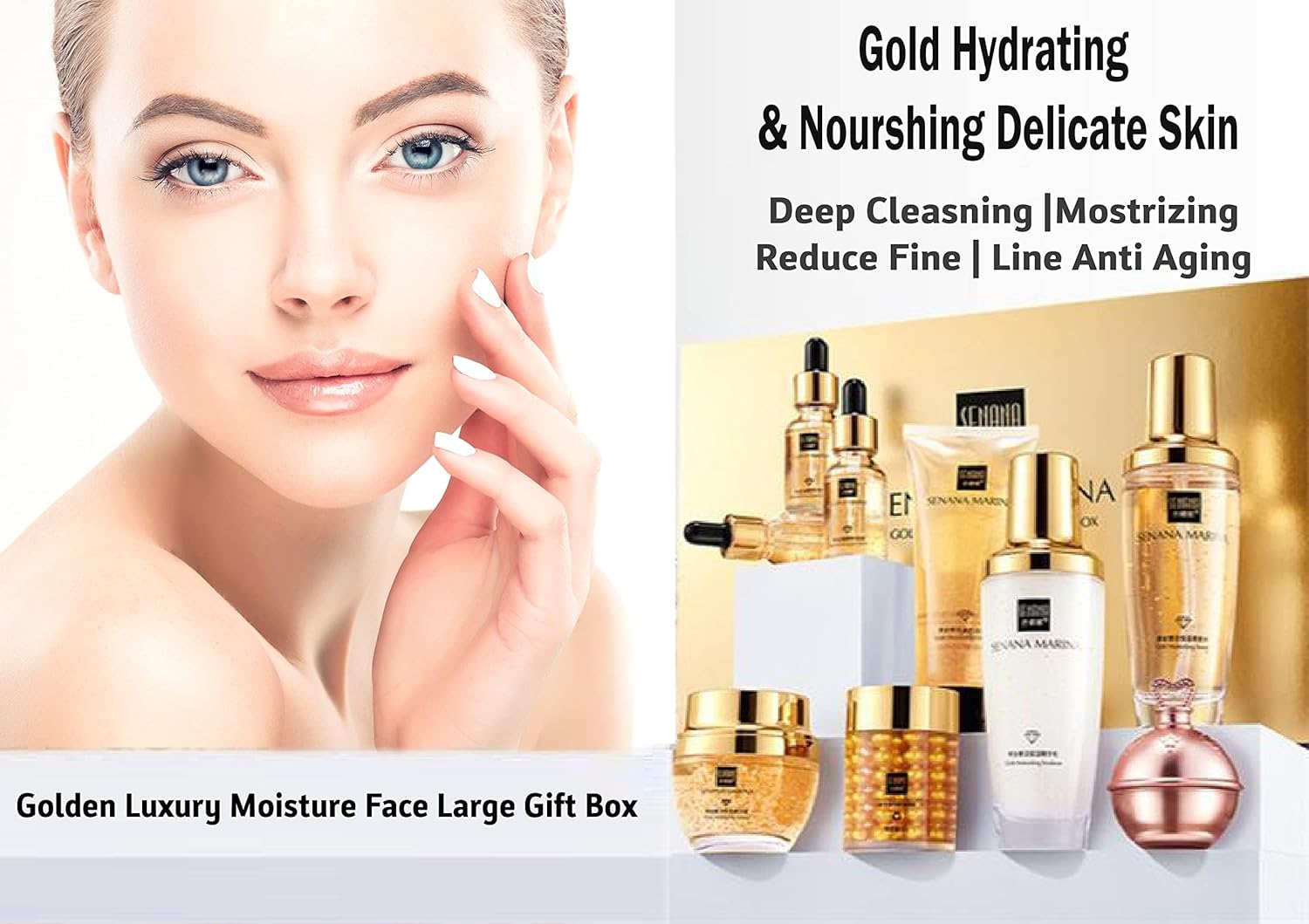 24K Gold Skin Care Set – 9-Piece Collection for Ultimate Moisturizing, Pore-Shrinking, and Oil Control