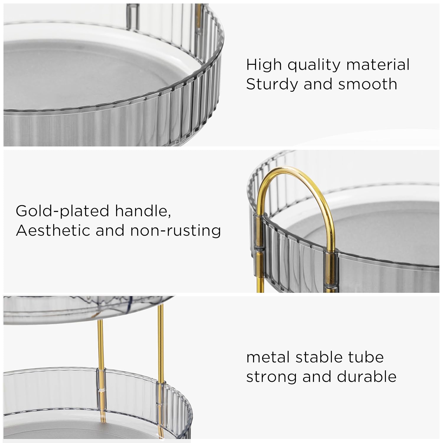 EASY TO USE – Embrace trouble-free assembly with our organizer. No tools are needed – just insert the gold steel into the tray’s groove, and you’re ready to go. In mere minutes, you’ll have a chic and practical organizer to elevate and simplify your beauty routine.