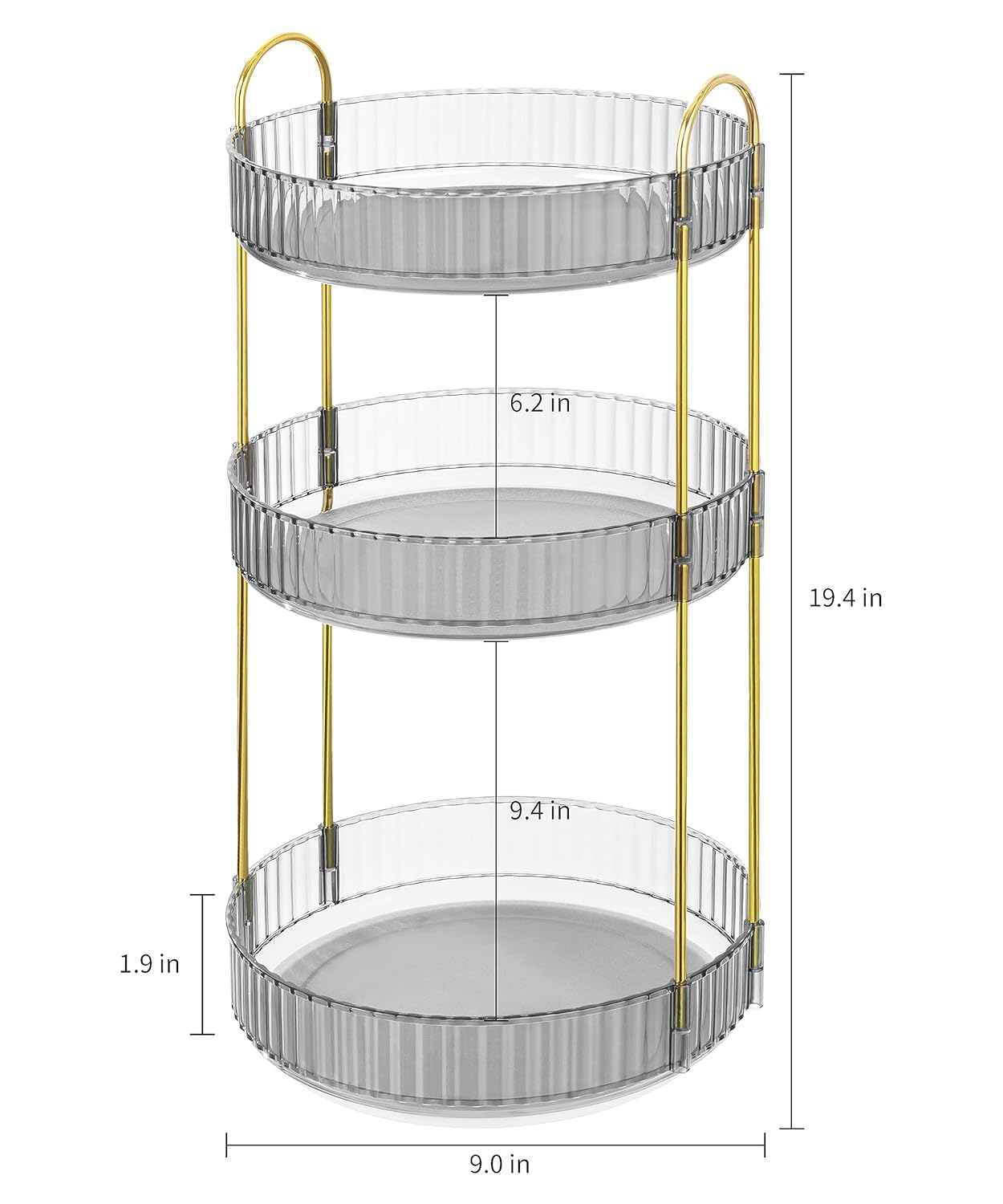 360 Rotating Makeup Organizer Countertop Clear Gray 3 Tier Bathroom Organizer Spinning Perfume Organizers, Skincare Organizers Makeup Carousel Cosmetic Brush Storage