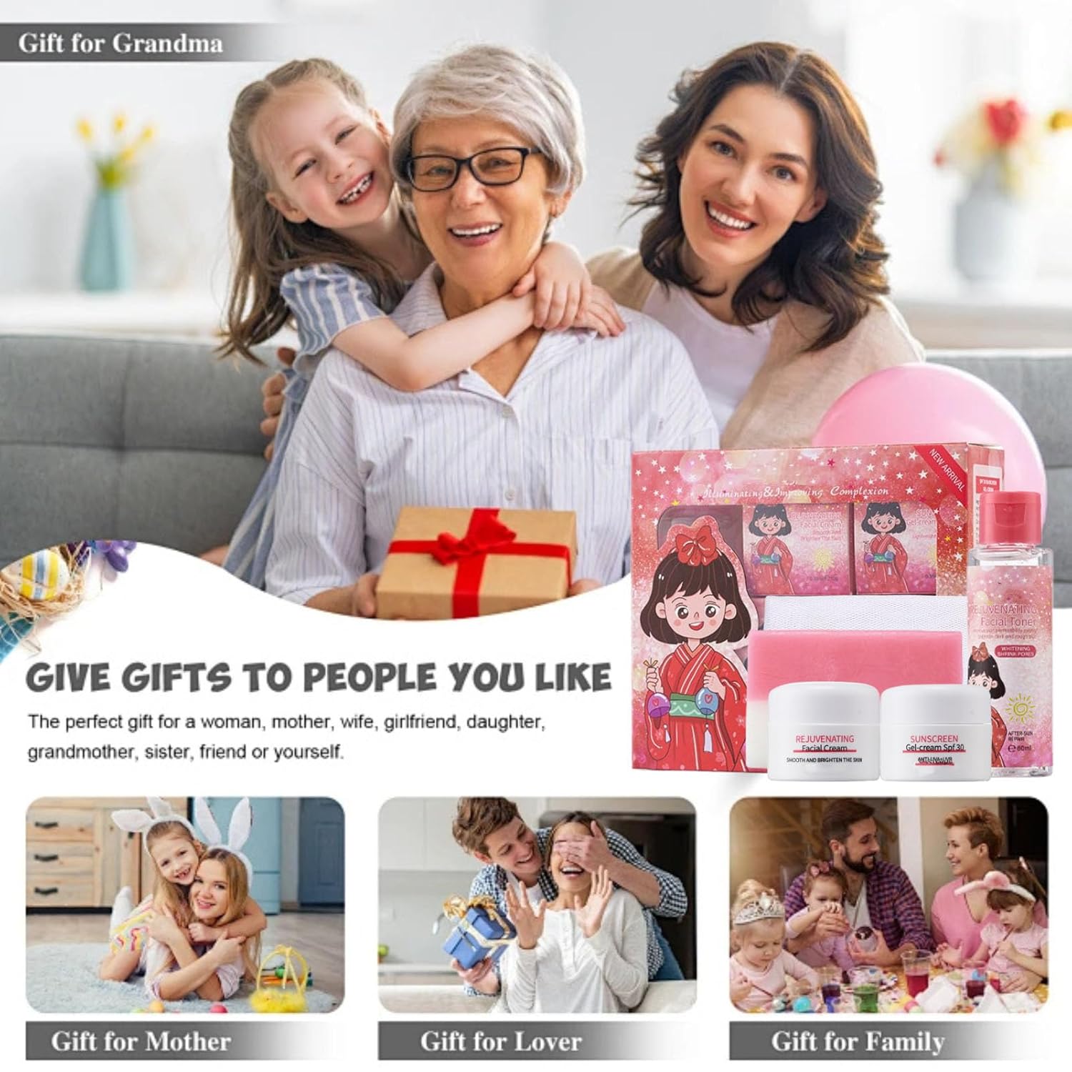 【Antioxidant & Anti-Aging】Combat the signs of aging with our women anti-aging skin care set, which protects your skin from environmental stressors. The kojic acid soap is known for its antioxidant benefit. And the sunscreen gel-cream resists UVA rays which cause skin aging. This bath sets for women gift is a must-have for any skincare gift set for women girls.