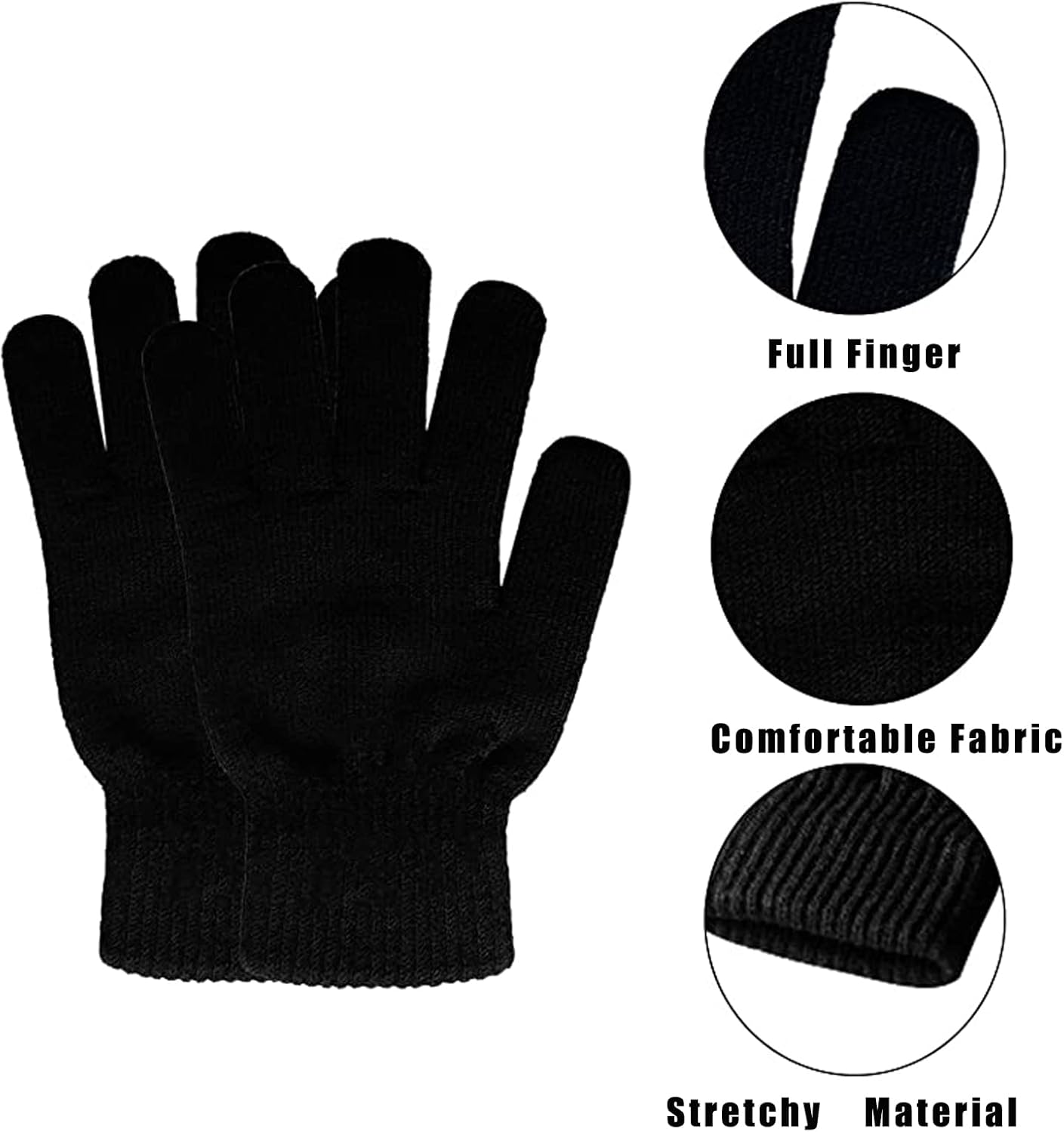 6 Pairs Winter Magic Gloves for Women Men Cold Weather Thermal Warm Stretchy Gloves Mittens Black Knit Gloves for Running Driving Hiking