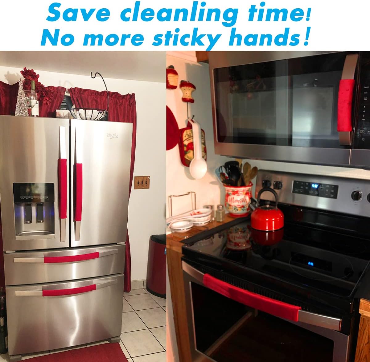✔【HANDLE COVER SIZE】-The set includes 6 pieces. 4 longer pieces measuring 15.7 inches ( for refrigerators, stoves, or other long handles). One medium-length piece measuring 7.9 inches ( for microwaves). One short piece measuring 6.3 inches ( for other short handles).
