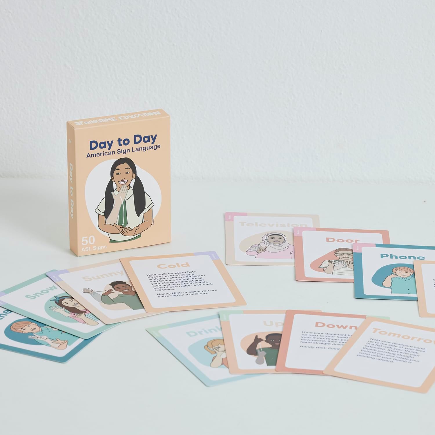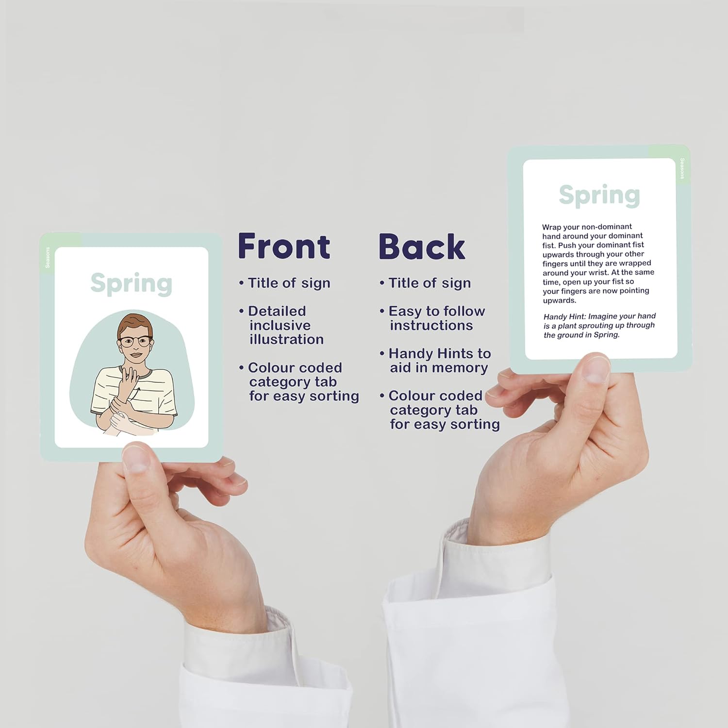 DOUBLE SIDED – Each card includes an inclusive illustration on one side and a comprehensive description of the sign on the other.