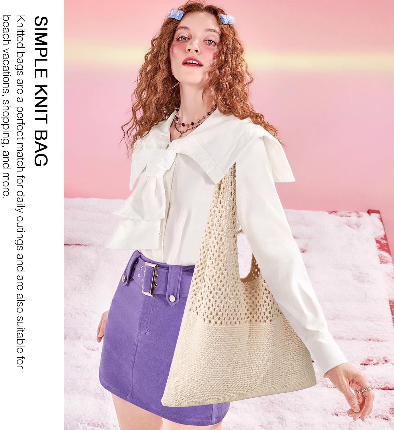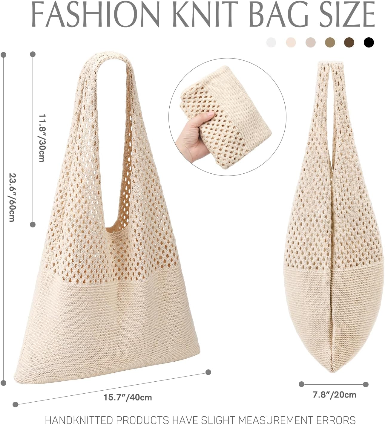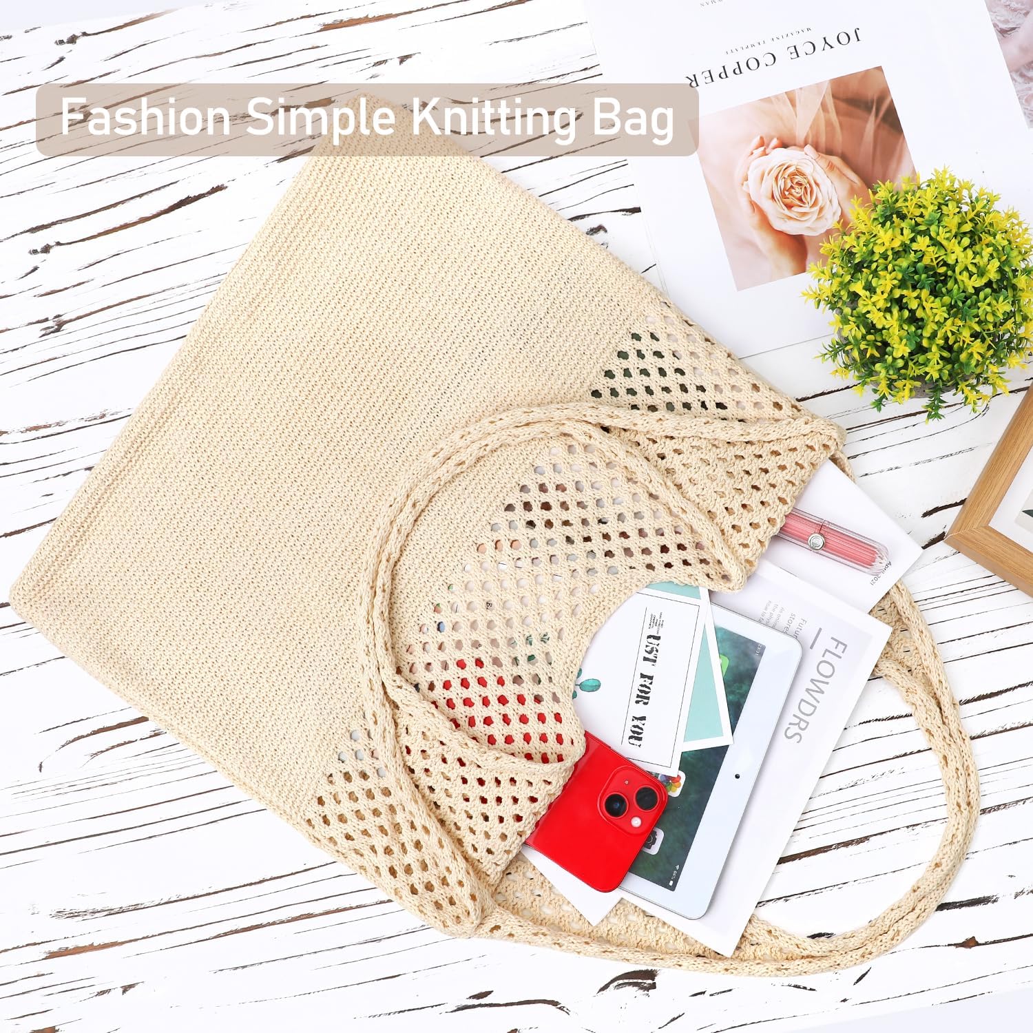 Ayieyill Crochet Tote Bag For Women, Crochet Mesh Beach Tote Bag Summer Vacation Aesthetic Boho Knit Bag for Women
