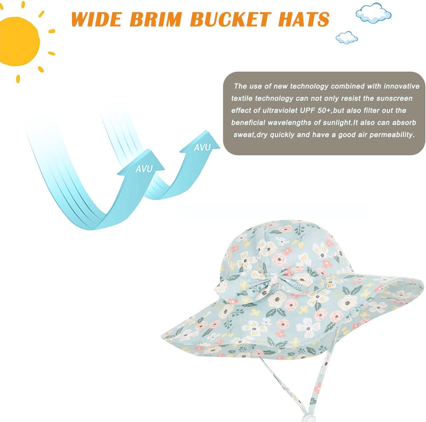 Baby Girl Sun Hat Summer Beach Hats with UPF 50+ Toddler Infant with Wide Brim Strap Outdoor Bucket Hat