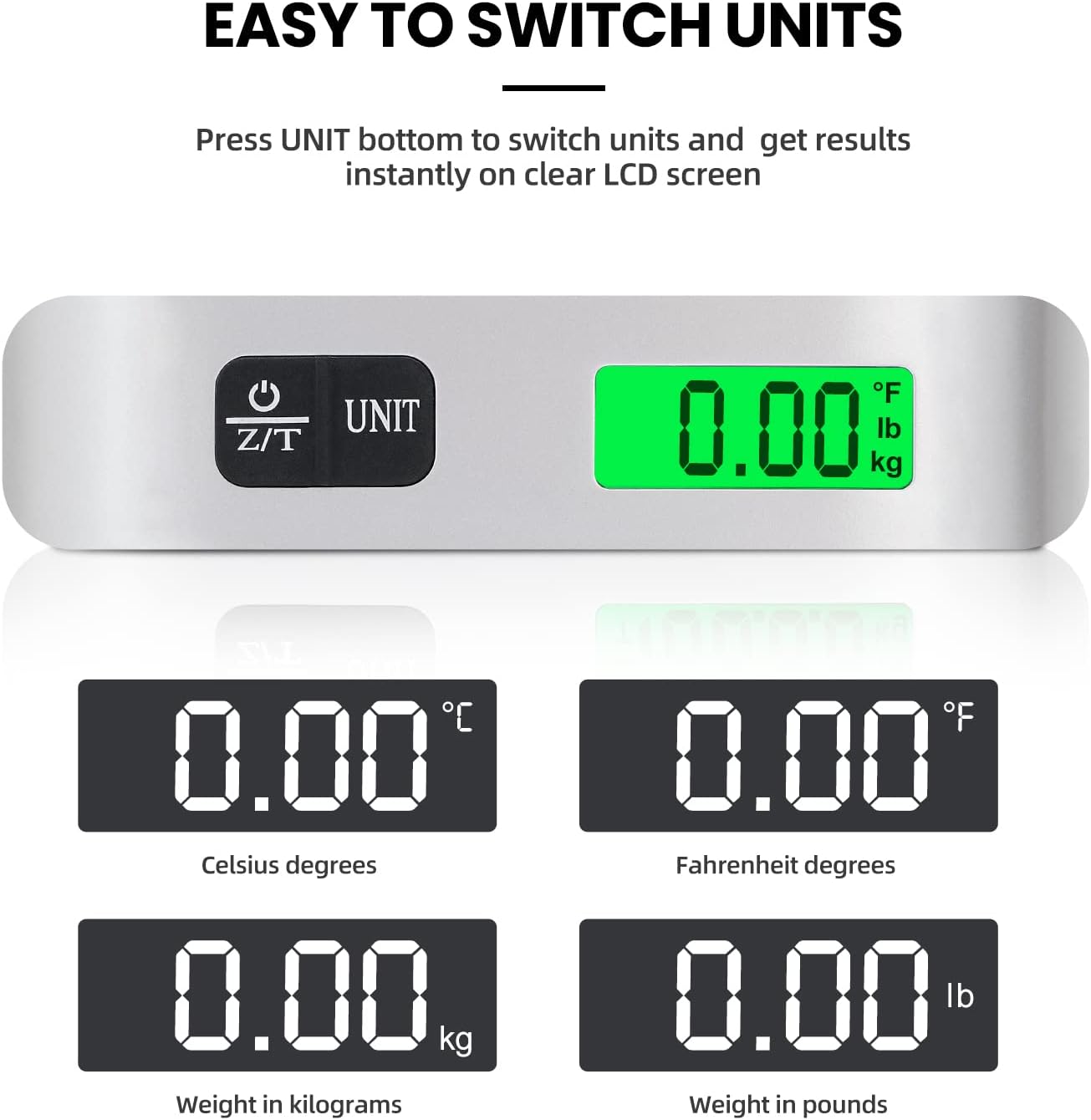 BAGAIL Digital Luggage Scale, 110lbs Hanging Baggage Scale with Backlit LCD Display, Portable Suitcase Weighing Scale, Travel Luggage Weight Scale with Hook, Strong Straps for Travelers