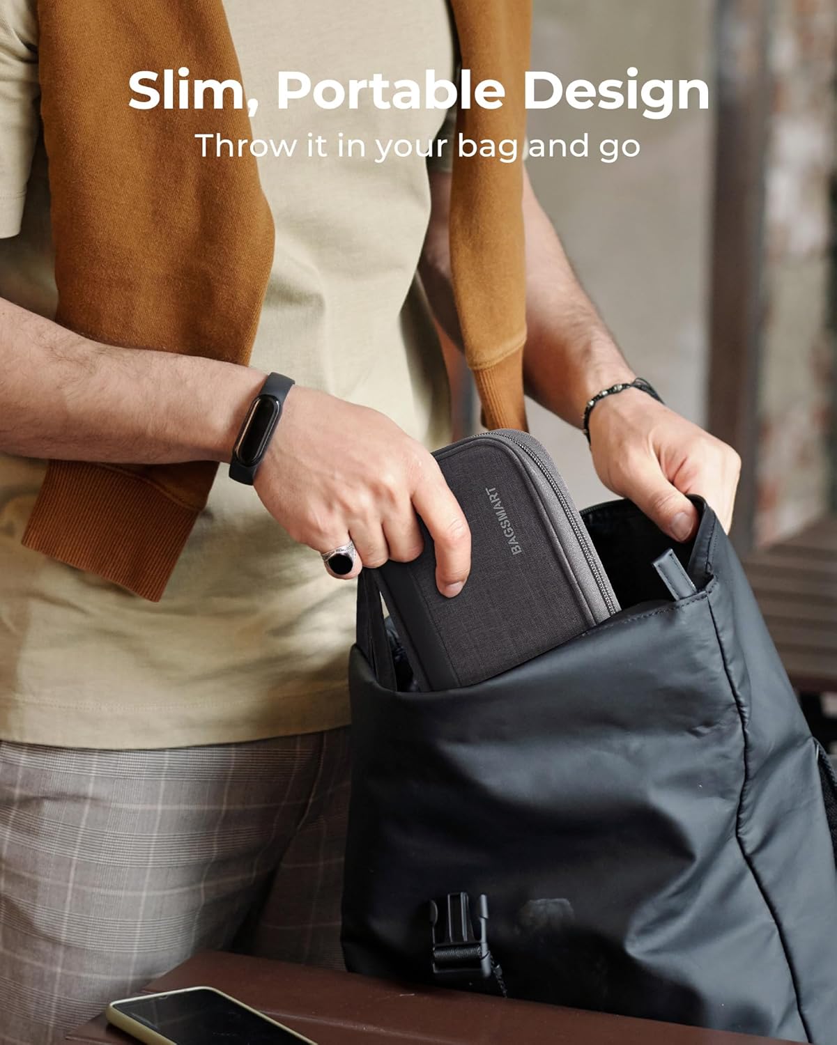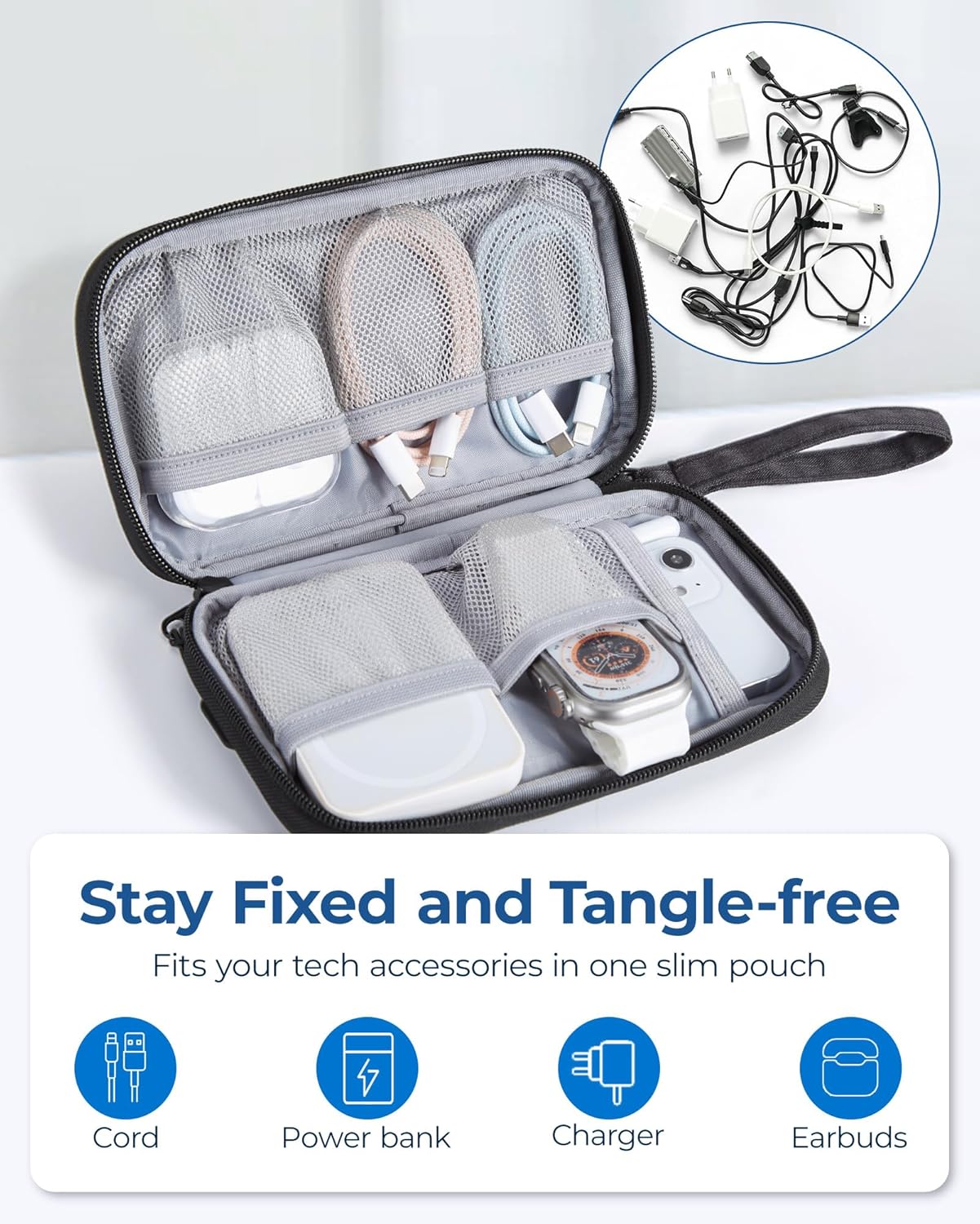 BAGSMART Small Travel Cable Organizer, Tech Organizer for Charger, Phone, Black