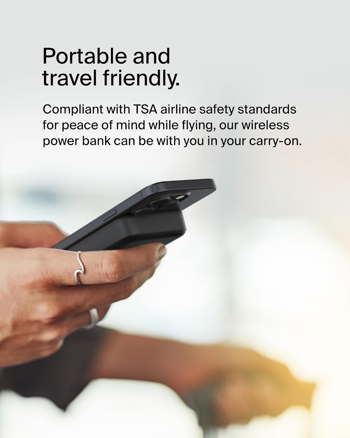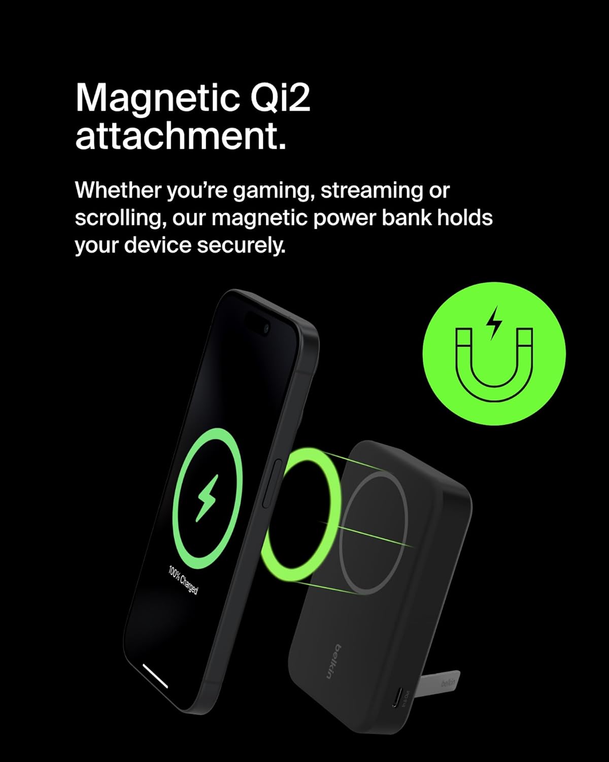 Belkin Portable Charger, Wireless Power Bank 10,000mAh w/ Qi2, MagSafe Compatible + Built-in Pop-up Kickstand – Compatible w/iPhone 16, 15, 14, Plus, Pro, Pro Max, and More – Black
