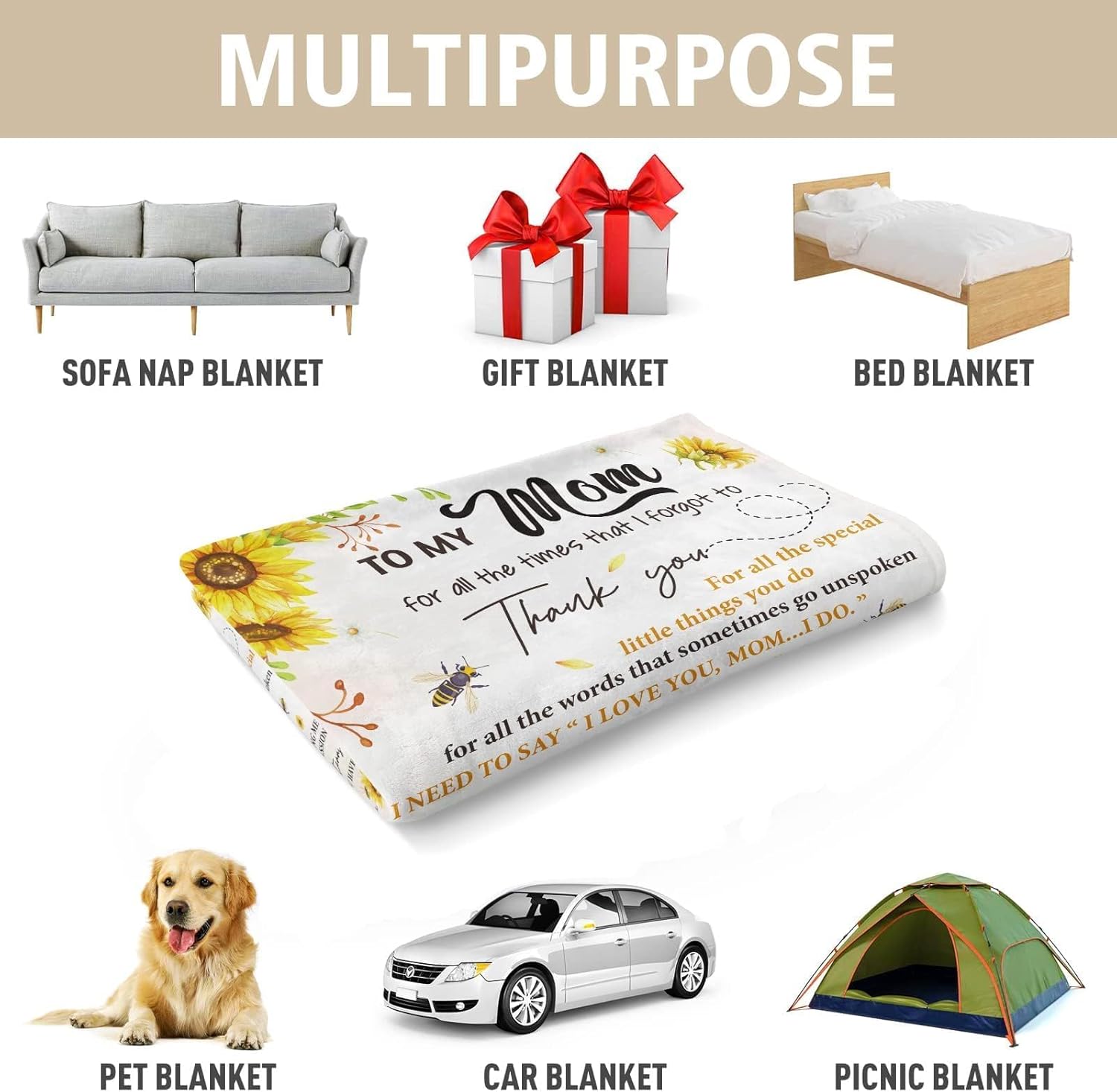 【Mom Gifts for Any Occasion】- Warm words on a blanket to express your love for your mom. Great mothers day gifts for mom, thanksgiving gifts, Christmas gifts, valentines day gifts, mom birthday gifts, I love you gifts, and thank you mom gifts. Delight her with this warm blanket.