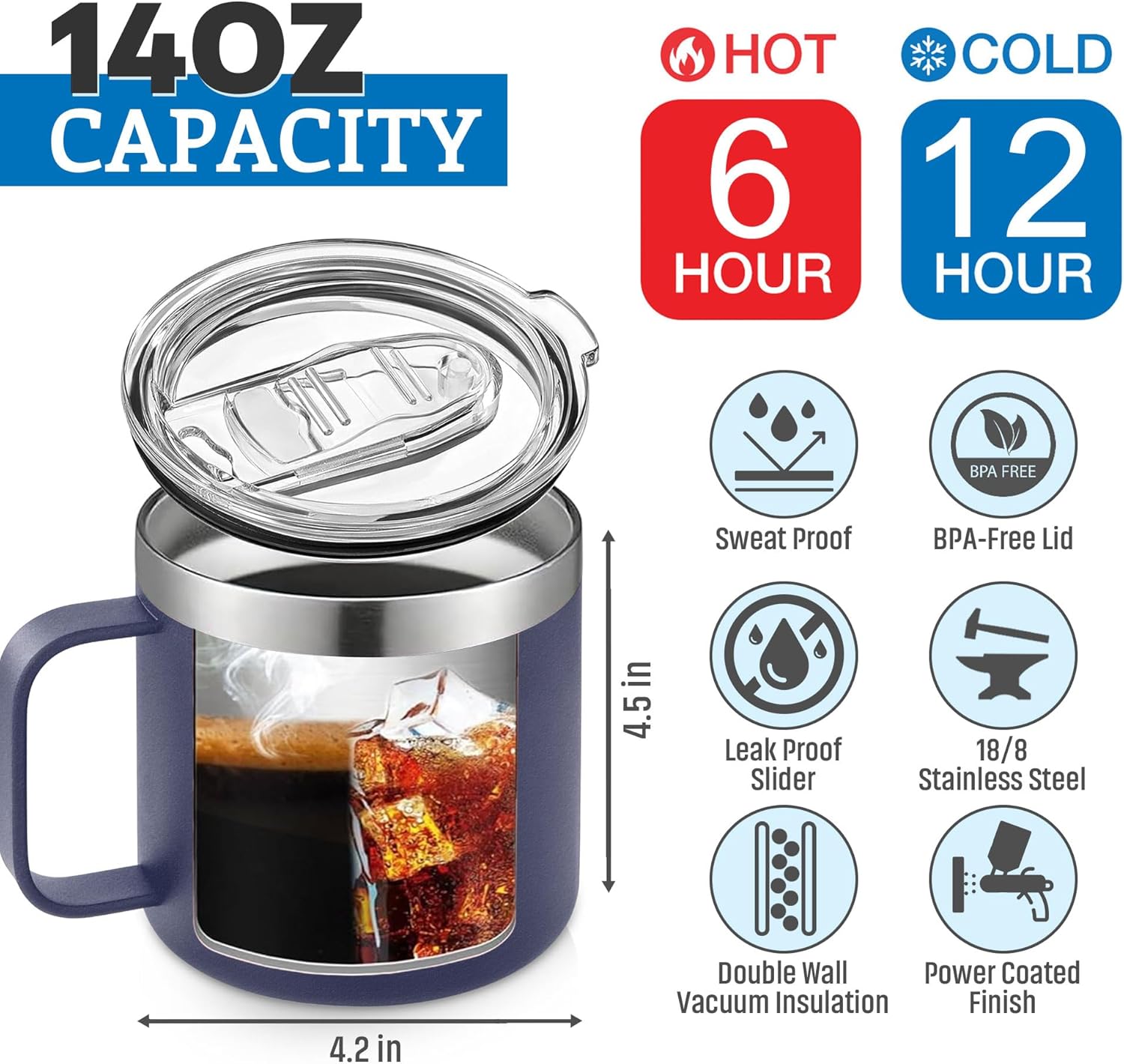 PREMIUM MATERIAL – These 18/8 food-grade stainless steel Mugs are durable, unbreakable, sweat proof and rust-resistant.