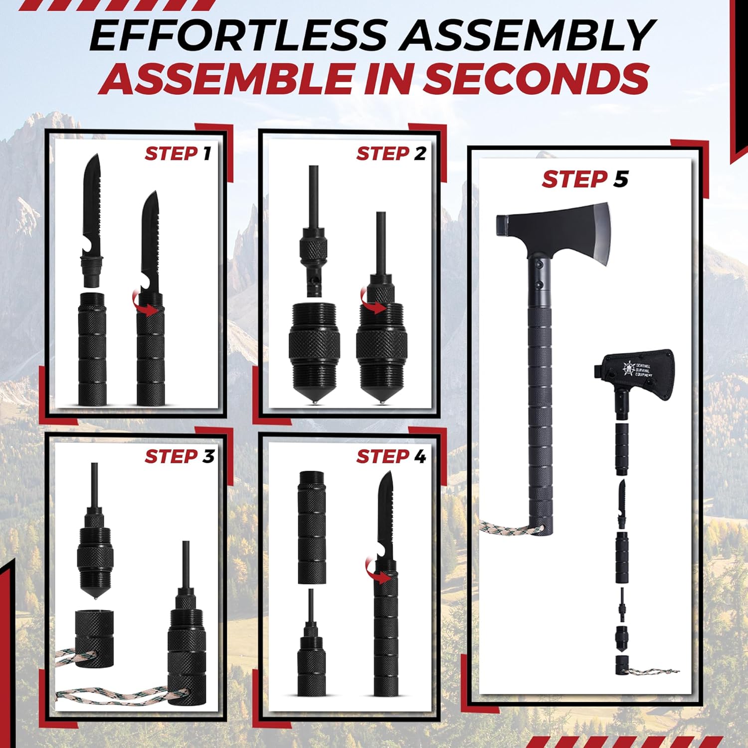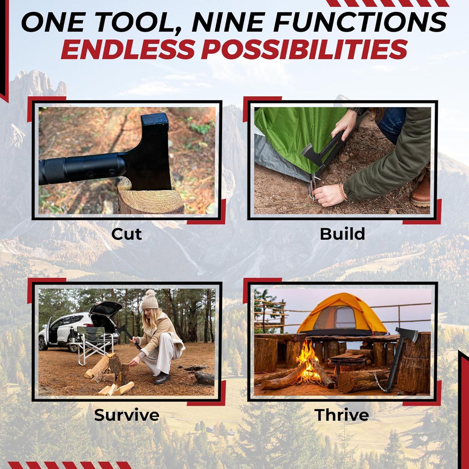[Multi-Tool Functionality – The Only Tool You’ll Need] More than just a hatchet, this is a full survival system. The hatchet head chops firewood, the hammer head drives stakes, and the built-in knife and saw cut through tough materials. The firestarter keeps you warm, while the compass, whistle, and window breaker keep you prepared for the unexpected. It even has a bottle opener—because survival shouldn’t mean going without. Built for adventure, ready for anything.