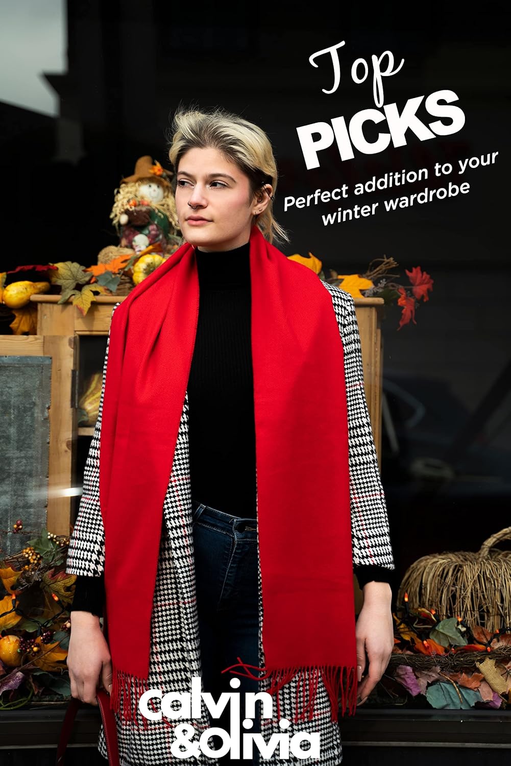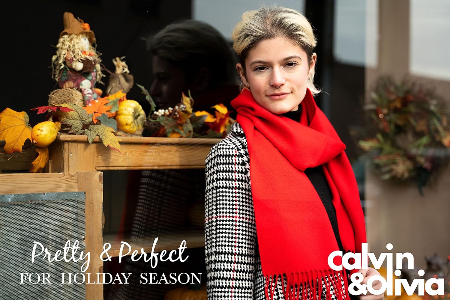 CALVIN & OLIVIA Women’s Fall Winter Scarf Thick Classic Plaid Scarf Wrap Warmth Soft Oversized Cashmere Feel Scarves