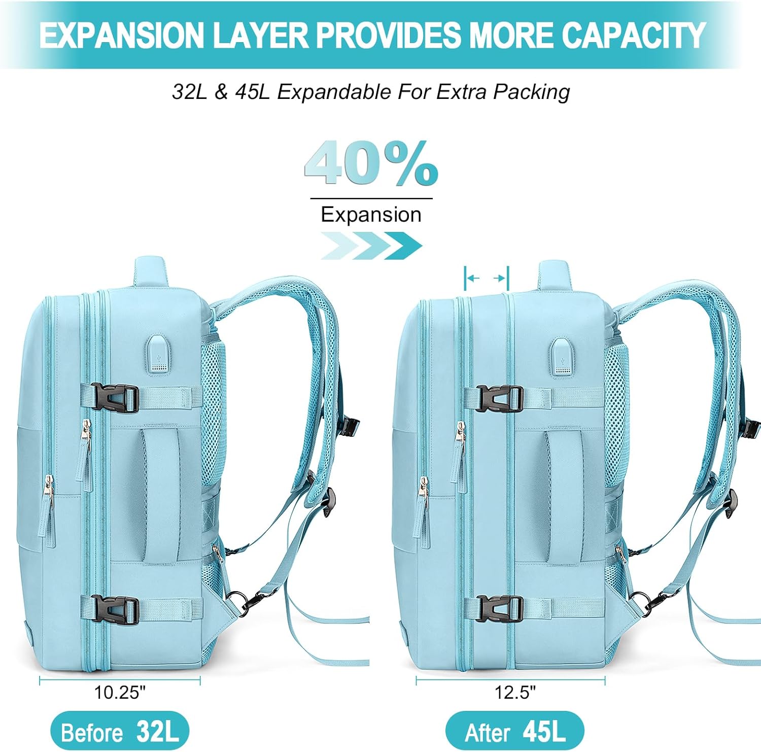 Expandable Travel Backpack:With an expandable capacity that goes from 22L to 42L, you’ll have all the space you need for 3-5 day trips or everyday commuting, giving you the freedom to take everything you need with you. And this carry on backpack meets IATA-approved size requirements, you can easily store it in the overhead bin or under your seat without any hassle. Whether you’re traveling around the world or just around town, It is the perfect companion for your next adventure.