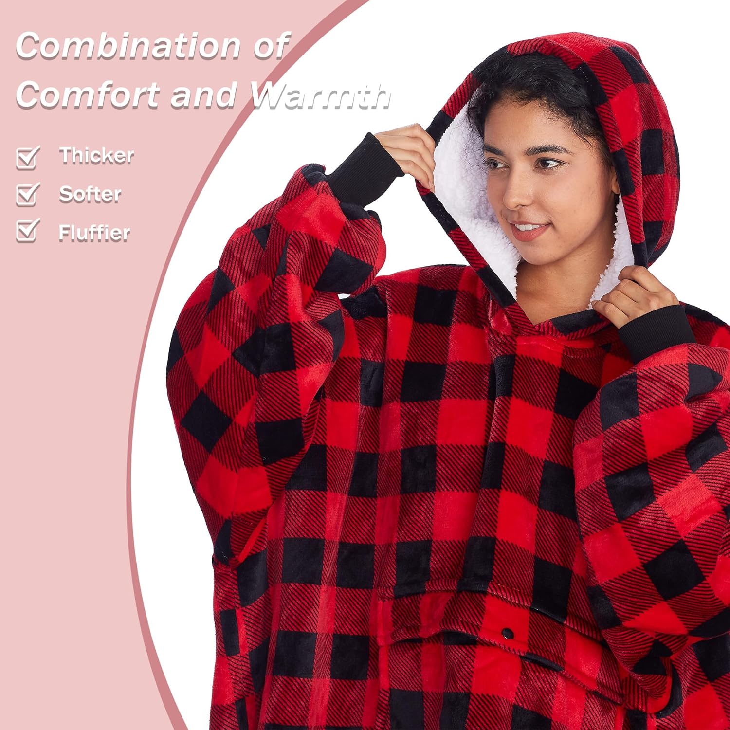 Catalonia Oversized Blanket Hoodie Sweatshirt, Wearable Sherpa Lounging Pullover for Adults Women Men