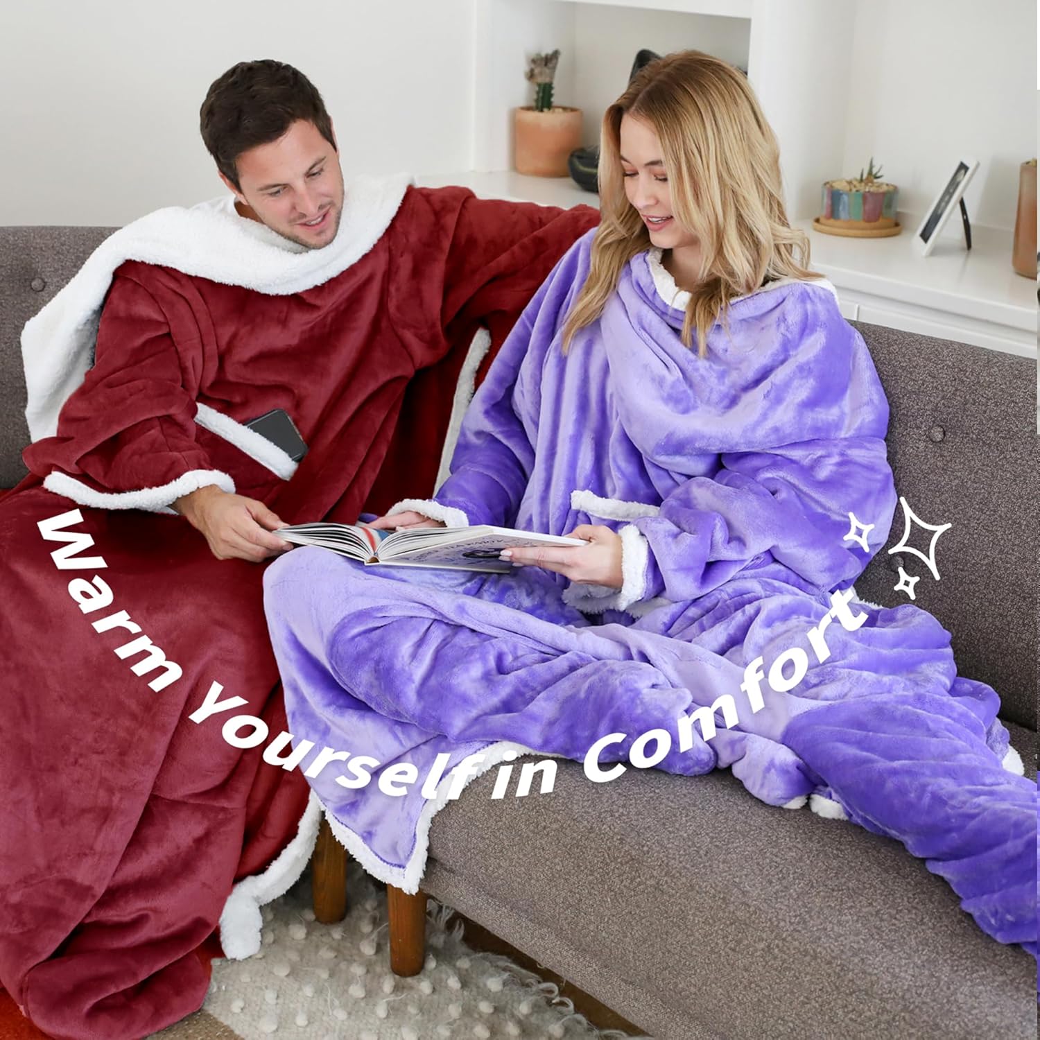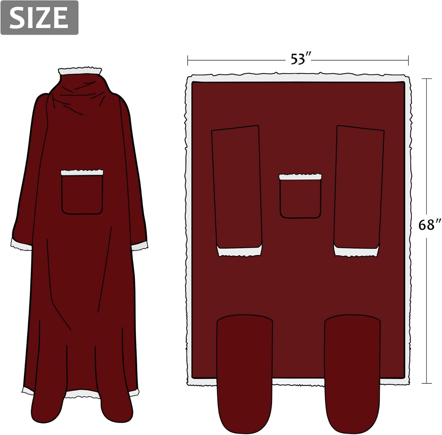 Catalonia Sherpa Wearable Blanket with Sleeves & Foot Pockets for Adult Women Men, Comfy Snuggle Wrap Sleeved Throw Blanket Robe, Gift Idea, Wine