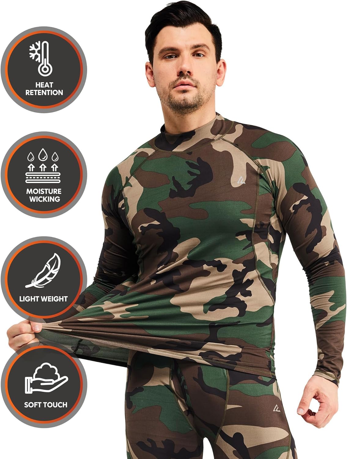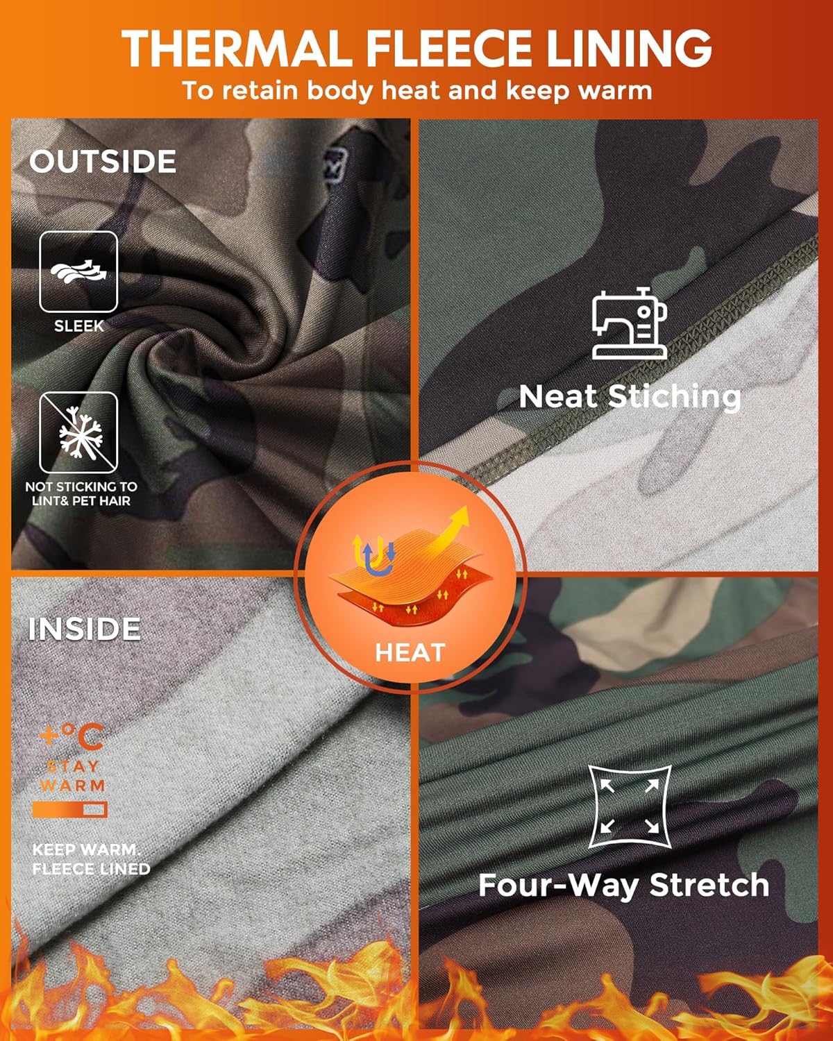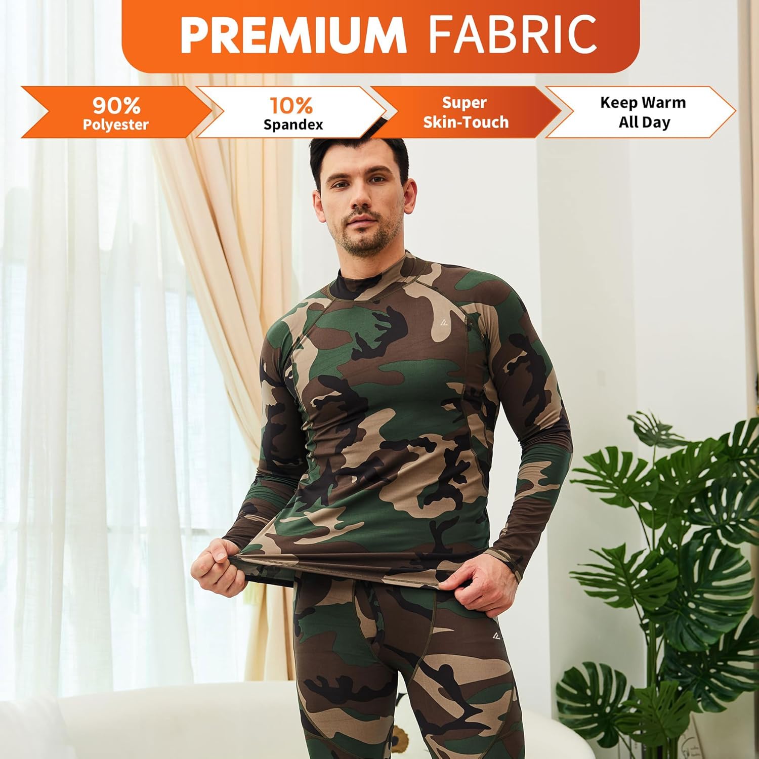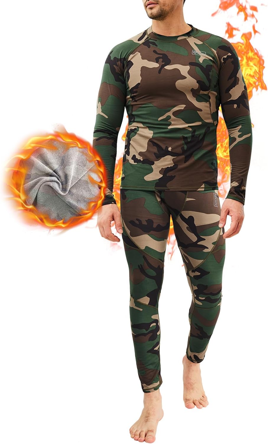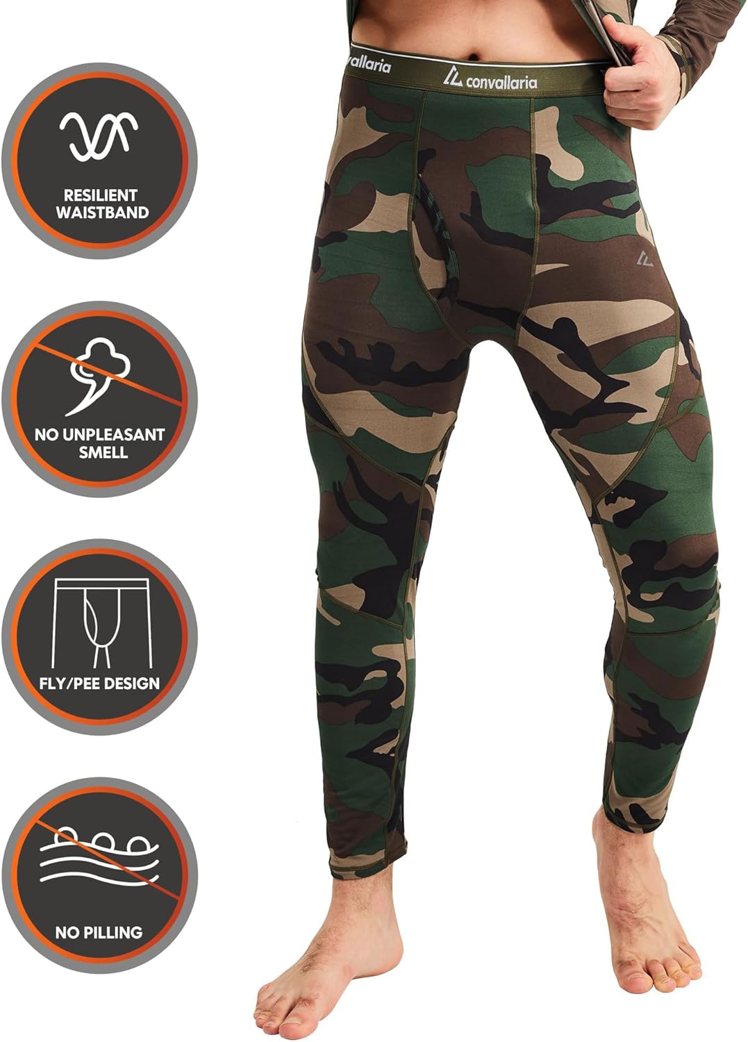 CL convallaria Mens Thermal Underwear Set with Fly Long Johns Base Layer Winter Hunting Gear Sport Top and Bottom