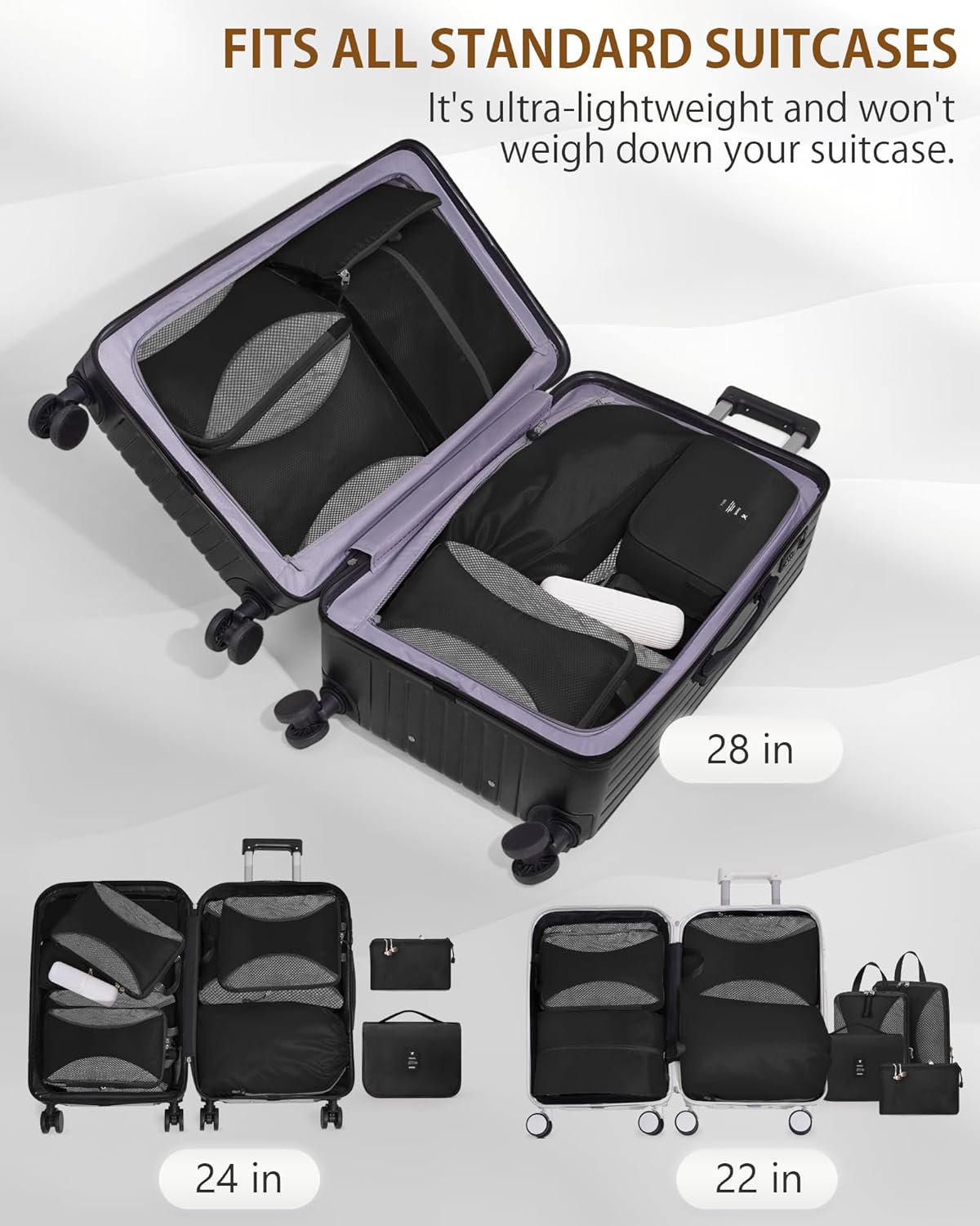 Compression Packing Cubes 12 Set, Suitcase Organizers, Luggage Organizer Bags for Travel, Extendable Packing Cubes for Travel Compression, Travel Essentials, Black