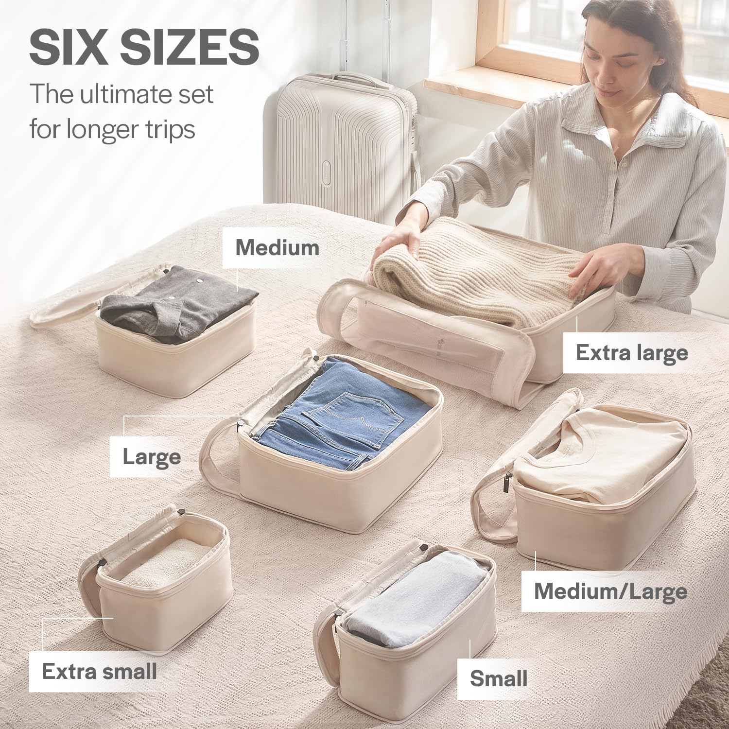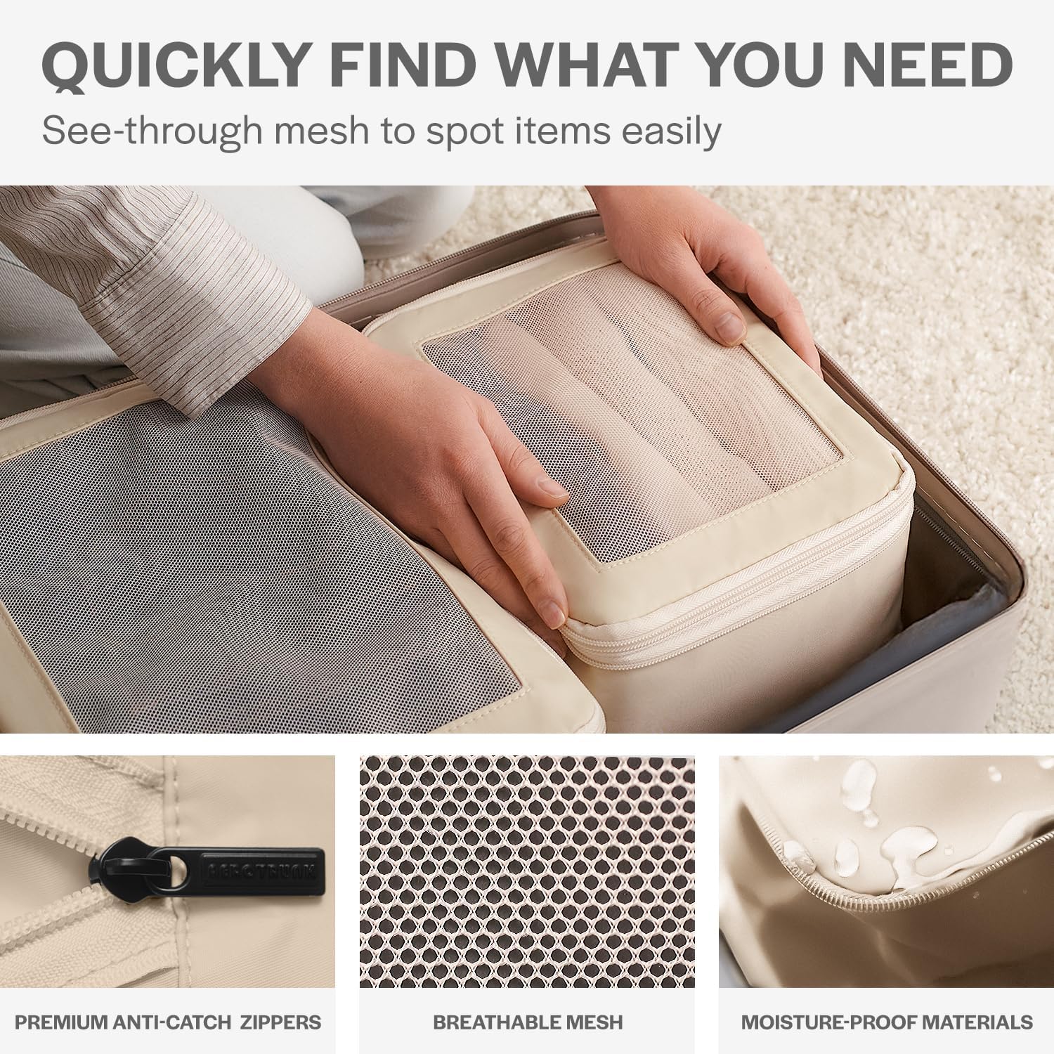 Compression Packing Cubes for Travel – Luggage Organizer Bags – Double Zipper Packing Cubes for Suitcases (6-Pack, Beige)