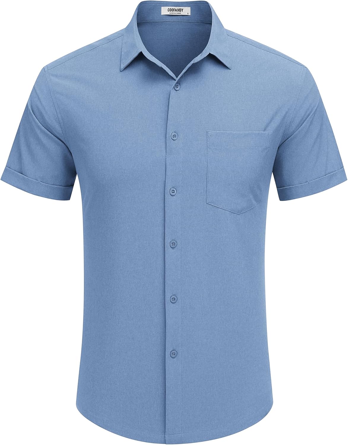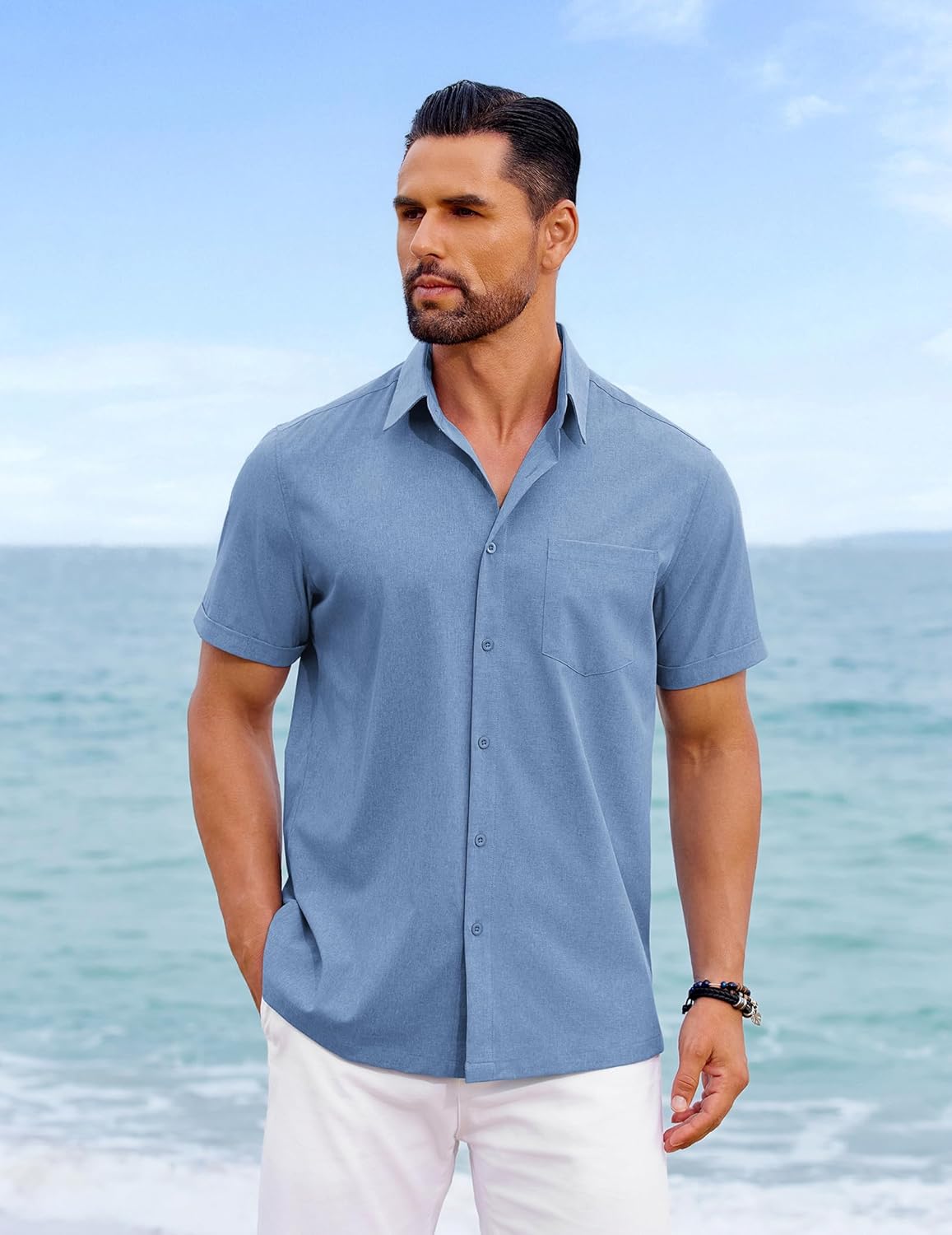 COOFANDY Mens Cool Button Down Shirt Short Sleeve Summer Beach Shirts Linen Texture Casual Shirts with Pocket