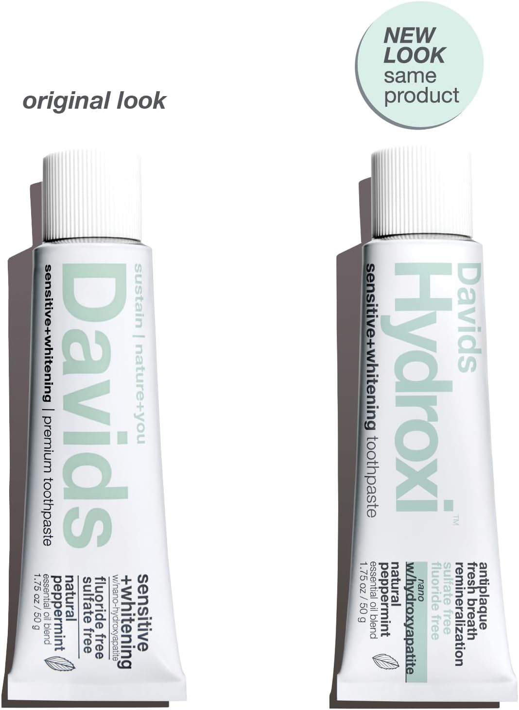 Davids Hydroxi Fluoride Free Nano Hydroxyapatite Toothpaste for Remineralizing Enamel & Sensitive Relief, Whitening, Antiplaque, SLS Free, Natural Peppermint, Made in USA, 1.75oz (Travel Size)
