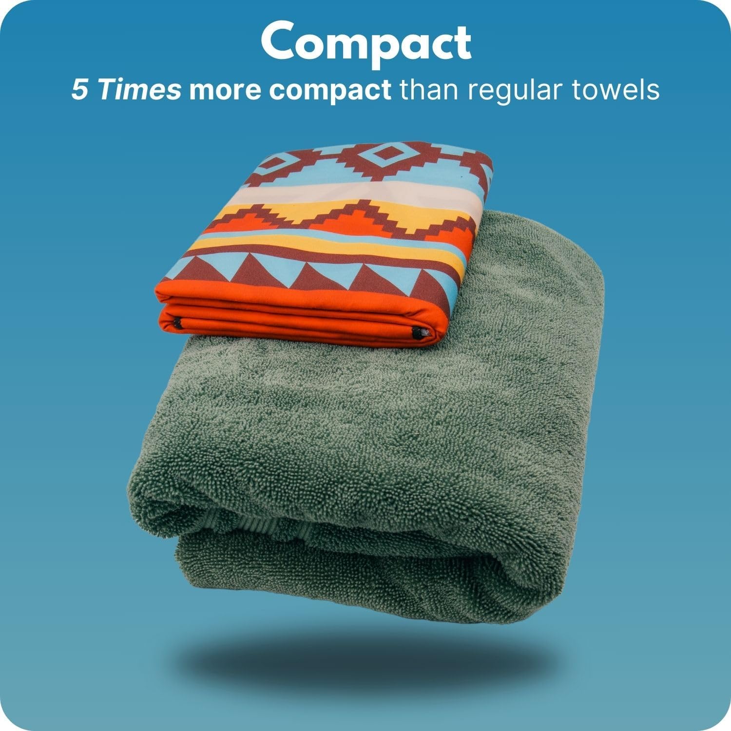 EXTRA LARGE SIZE YET COMPACT FOR TRAVEL – This beach towel is oversized, providing ample space for lounging. Despite its big size, the travel towel is lightweight and compact taking up minimal space in your beach bag. Easily fits into the included pouch for packing during any vacation.