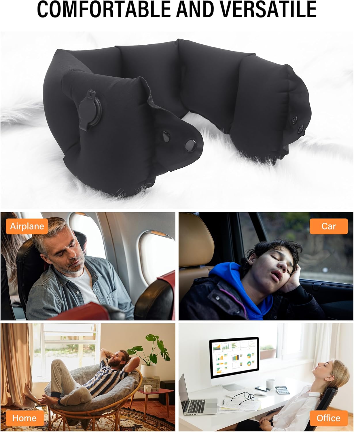 Estefanlo Travel Pillow for Airplane, Comfortable and Infaltable Neck Pillow for Travel with Portable Drawstring Bag, Lightweight Inflatable Plane Pillow for Sleeping (Black)