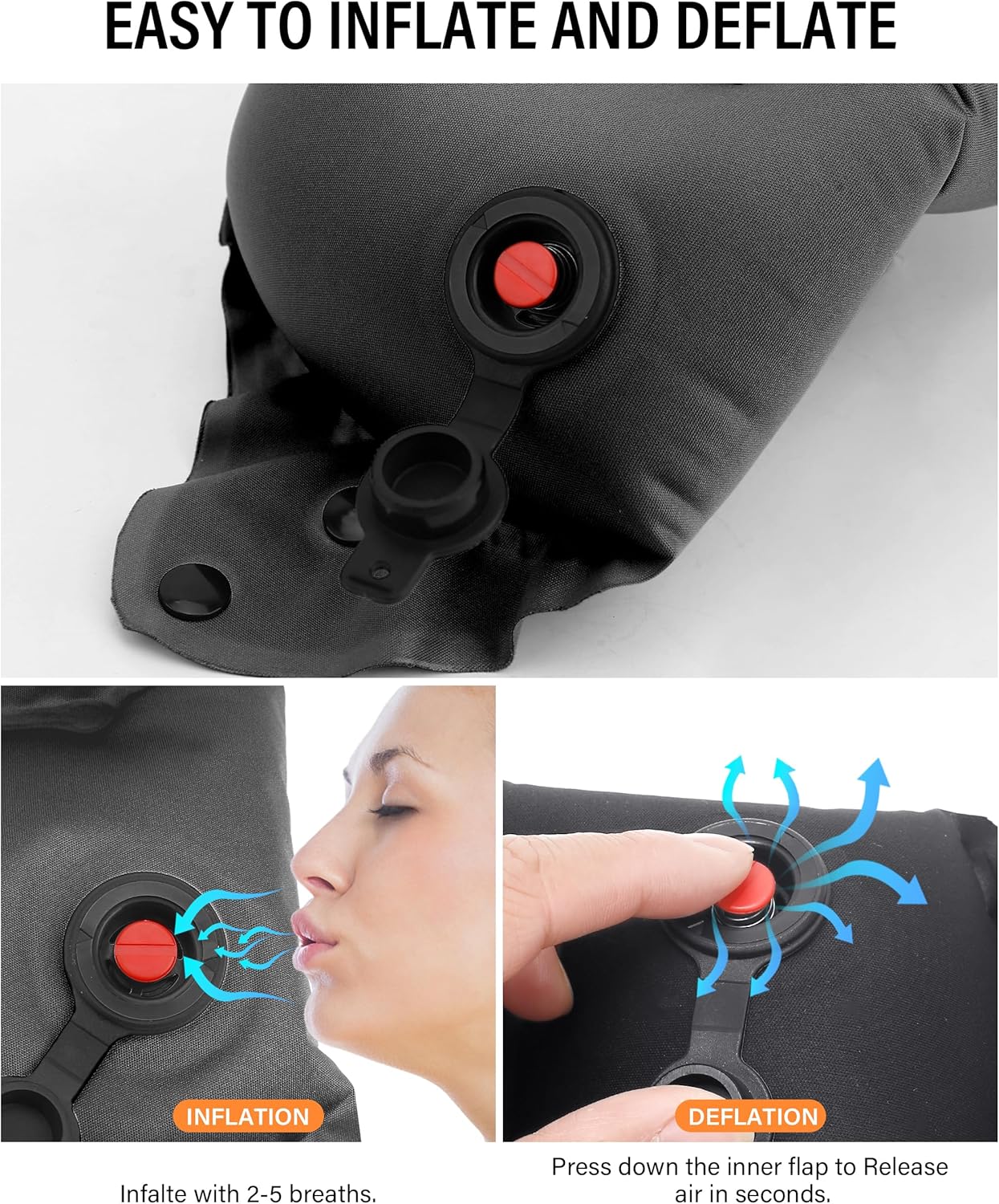 Easy to Inflate and Deflate – Our inflatable pillow comes with a valve that is easy to open or close, you can easily adjust the neck stiffness and support level by adding or subtracting air. After use, just press the spring button in the air valve to quickly deflate and use it easily.