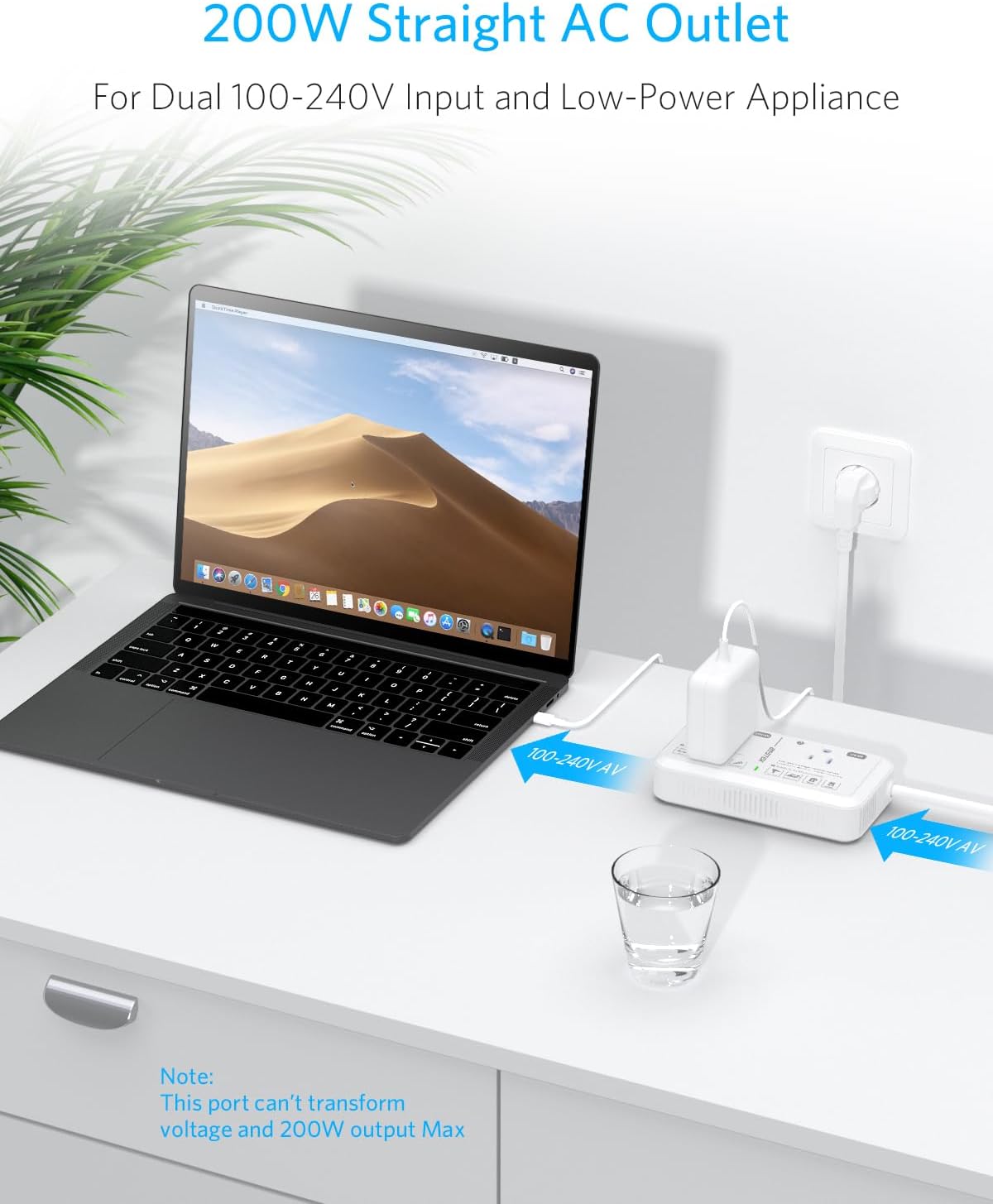 Why Choose Our Power Converter: Our power converter has got you covered when it comes to charging multiple devices. With two AC outlets and two USB ports, you can conveniently charge up to four devices at once. One of the AC outlets converts voltage from 100-240V to 100-120V, delivering a powerful 2000W specifically designed for US devices like hair dryers, electric kettles, and flat irons. The other AC outlet supports dual 100-240V input devices and provides a maximum power of 200W, perfect for low-power appliances such as laptops, cellphones, tablets, and hair straighteners.