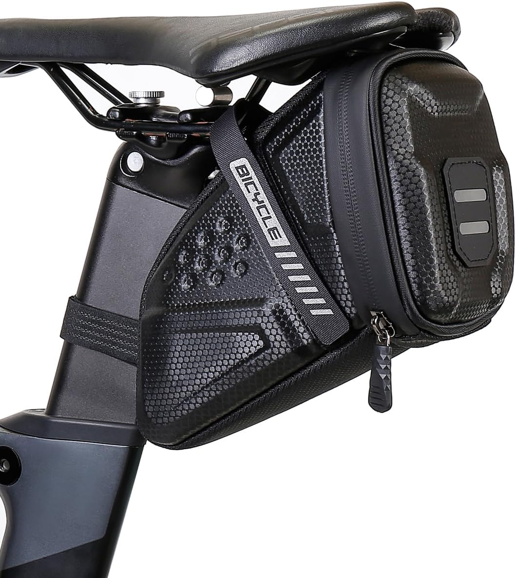 Hard shell surface – made of high-quality EVA material, saddle bag surface has texture, luster, durable, waterproof, shock-proof, not easy to deformation. You can really feel the difference between the material of the saddle bag and the general product. In addition, the smooth surface makes the bike seat bag easy to clean.
