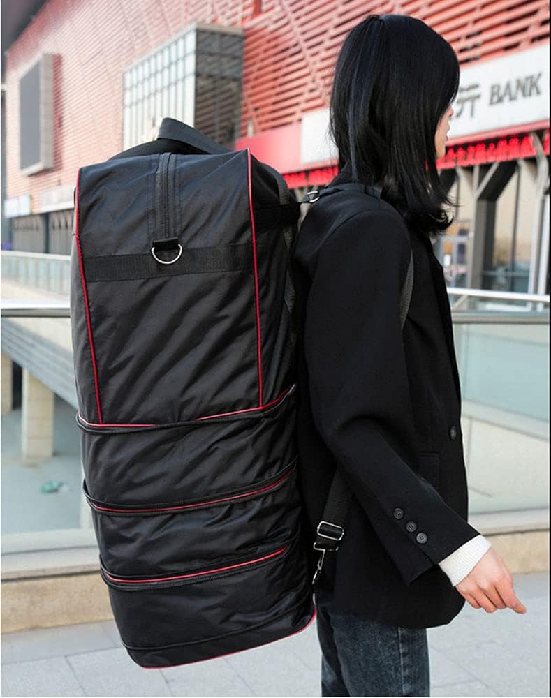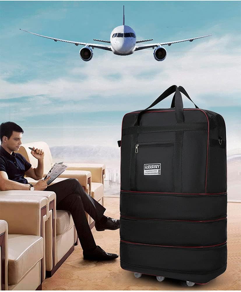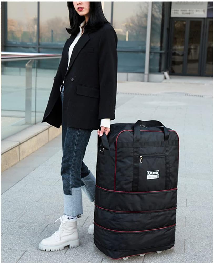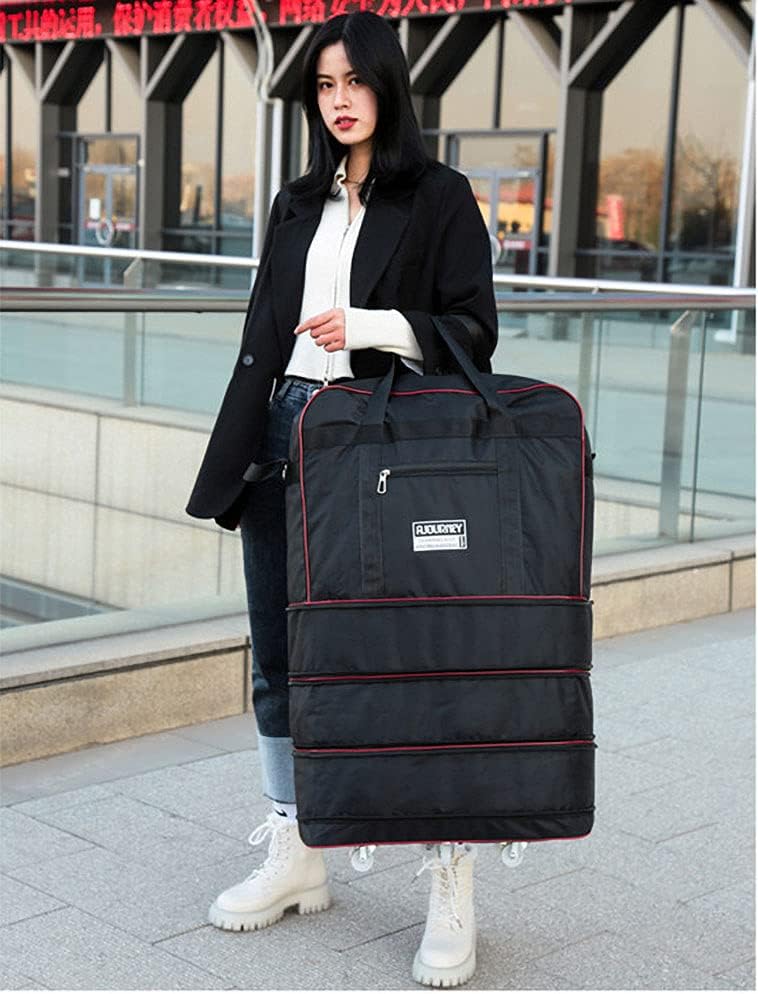 Expandable Extra Large Travel Oxford Duffel Bag with Wheels Waterproof Lightweight Traveling Foldable Suitcase (Black)