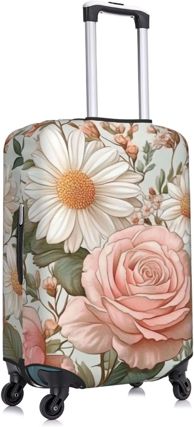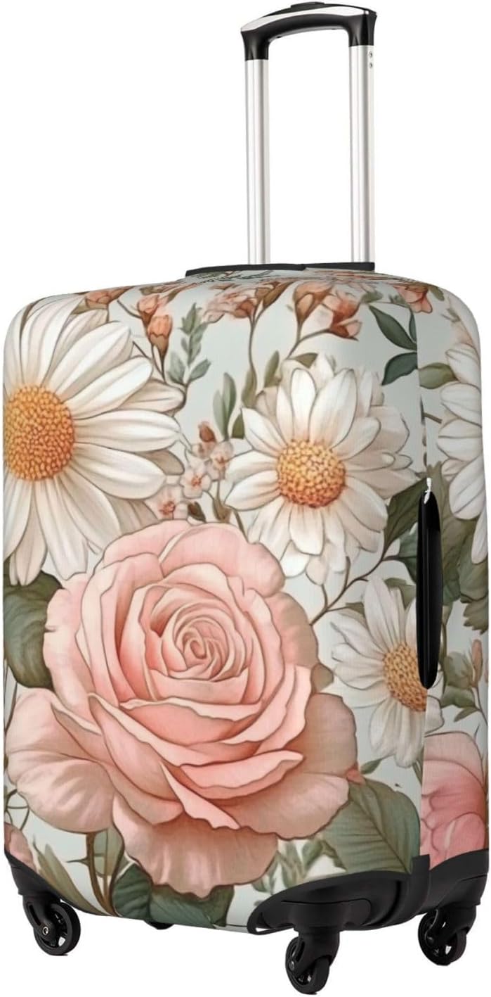 Flowers Print Travel Luggage Cover Elastic Baggage Protector For Men Women Fits 18-21 Inch Luggage