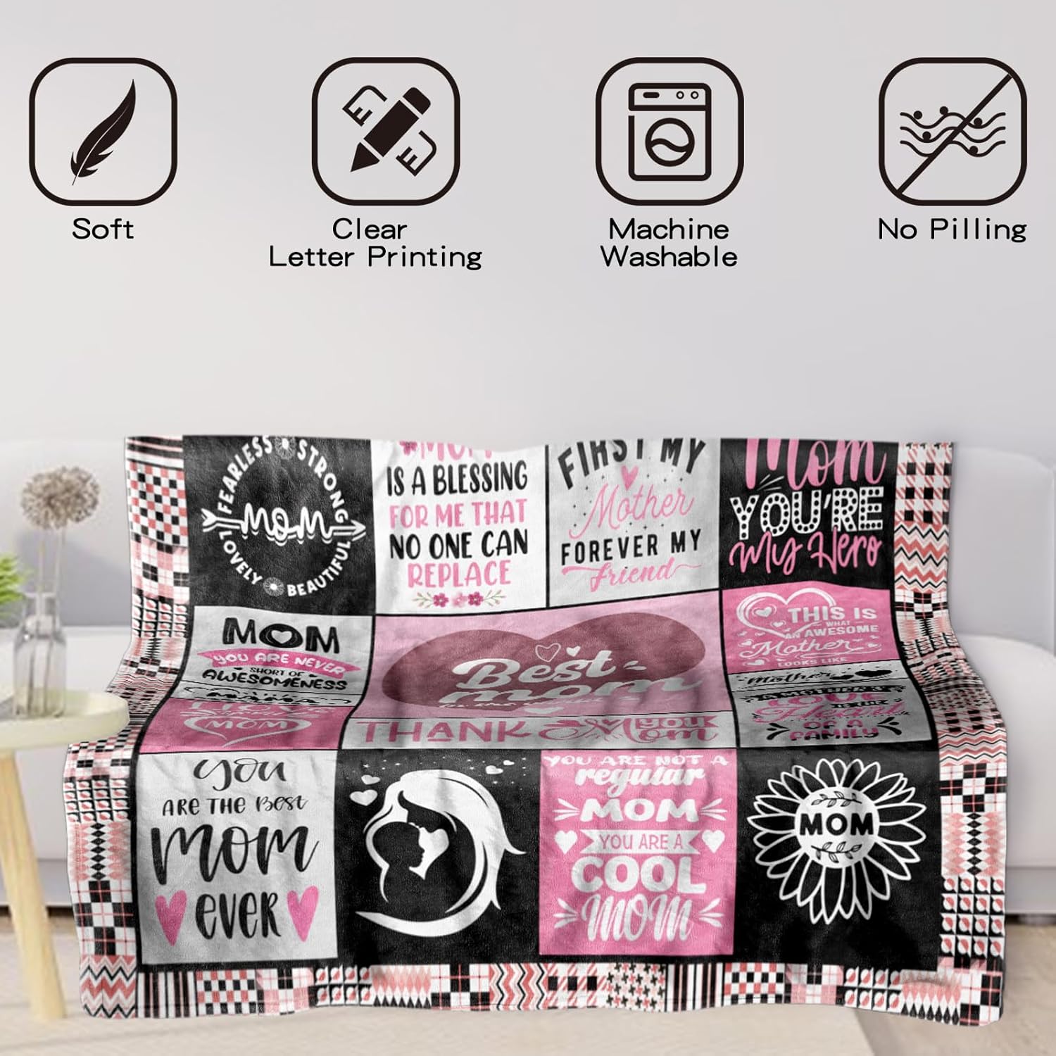 Well-Printed and No Fading:The printing on the blanket is very clear and creative.Those printed texts express our love and gratitude for our mother,thanks for everything she has done for her family and children