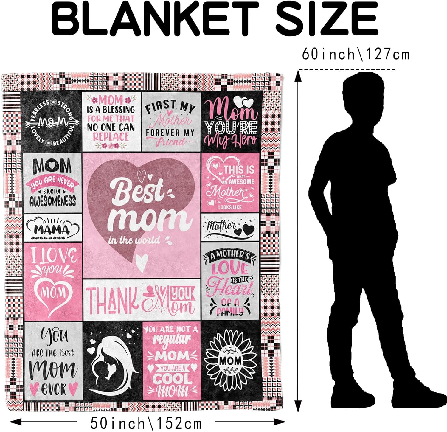 Premium Quality:Our Blankets is made of soft flannel which is breathable and comfortable.Mom blankets size is 50*60 inches.The blanket is very lightweight for mom,she can carry it to anywhere she needs warm conveniently