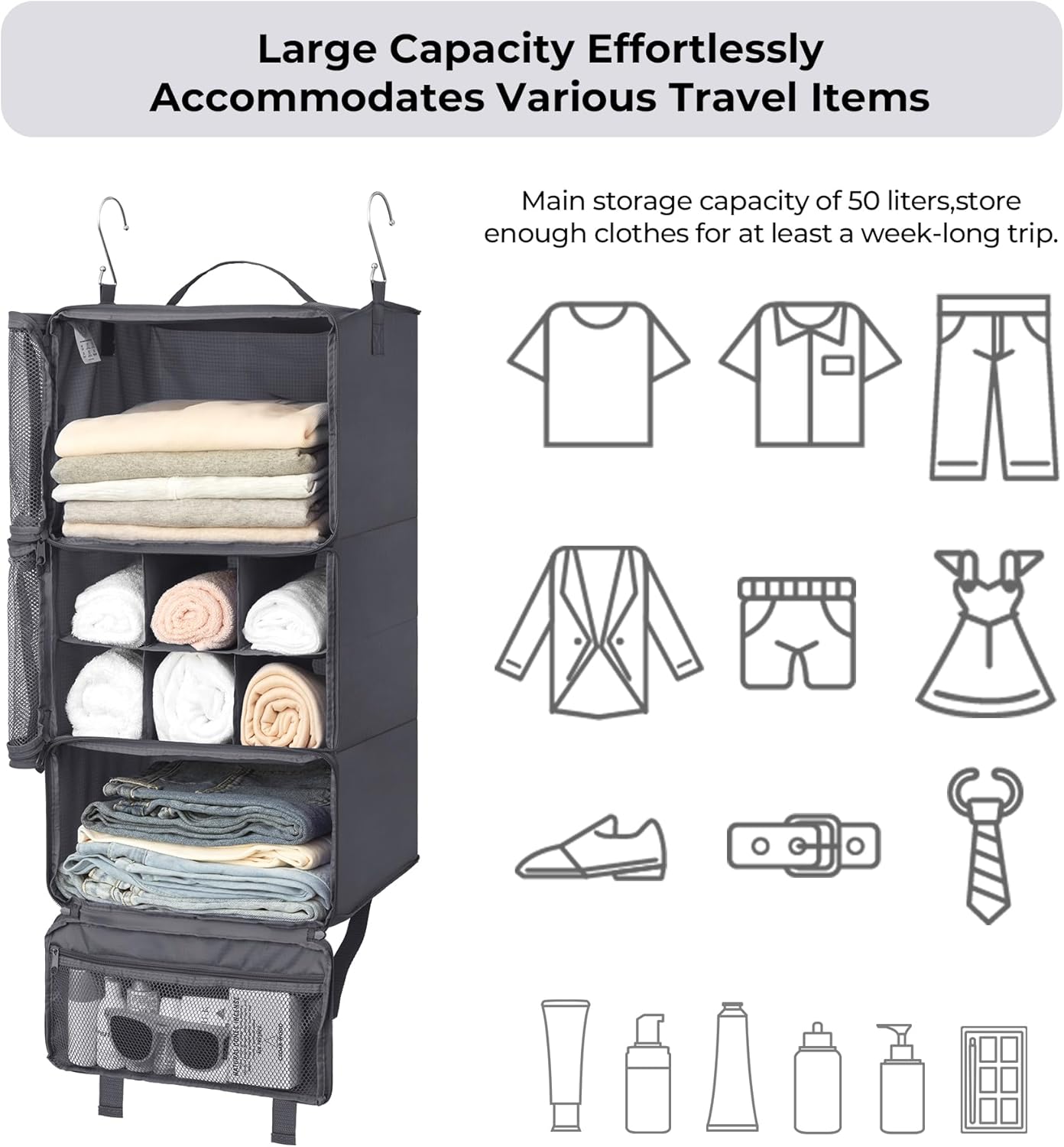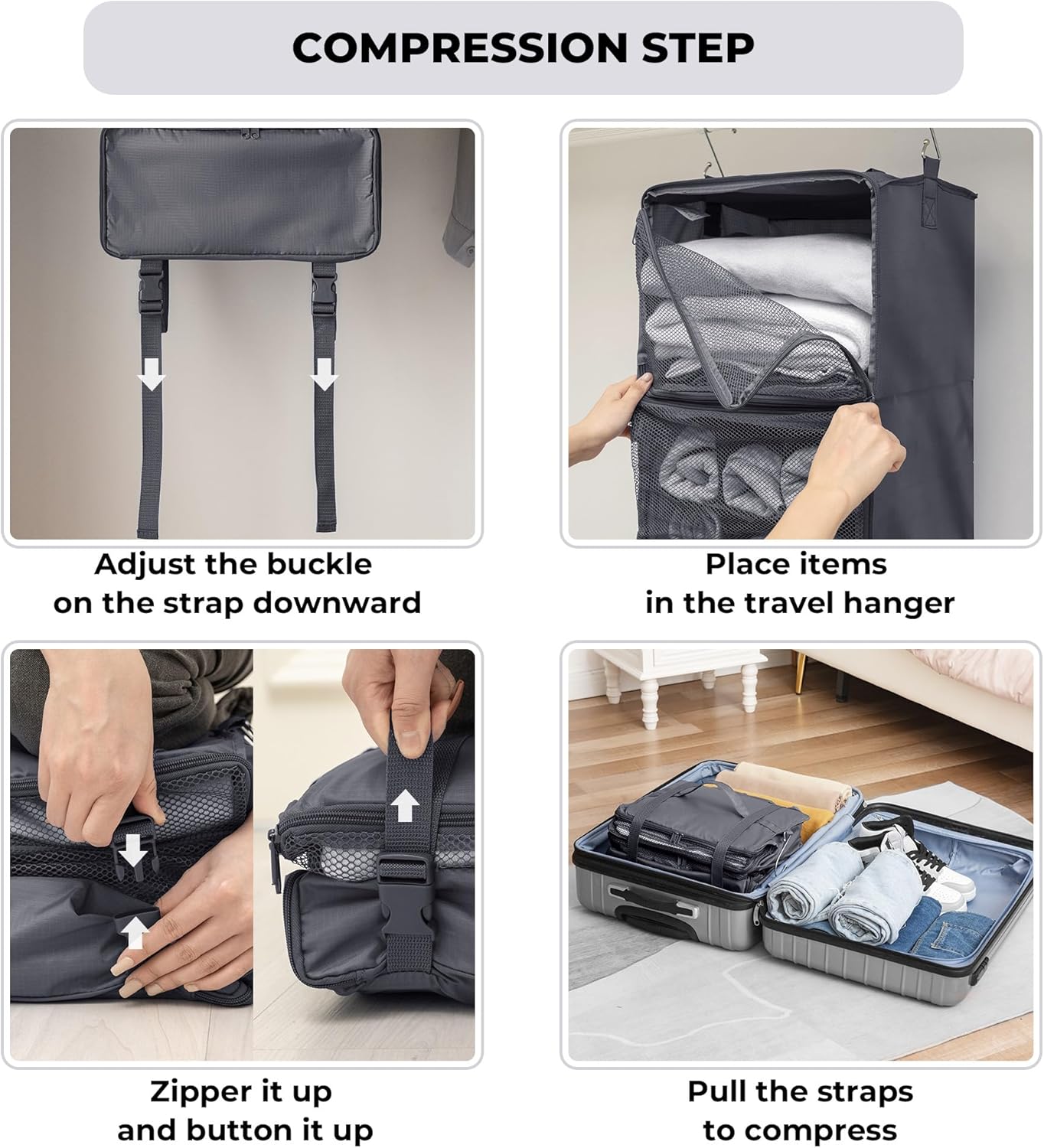 GRANNY SAYS Compression Packing Cubes for Travel, Extra Large Hanging Luggage Organizer, 3-Shelf Foldable Hanging Travel Shelves with 2 Hooks and Window, Packing Cubes for Carry on Suitcase Organizer