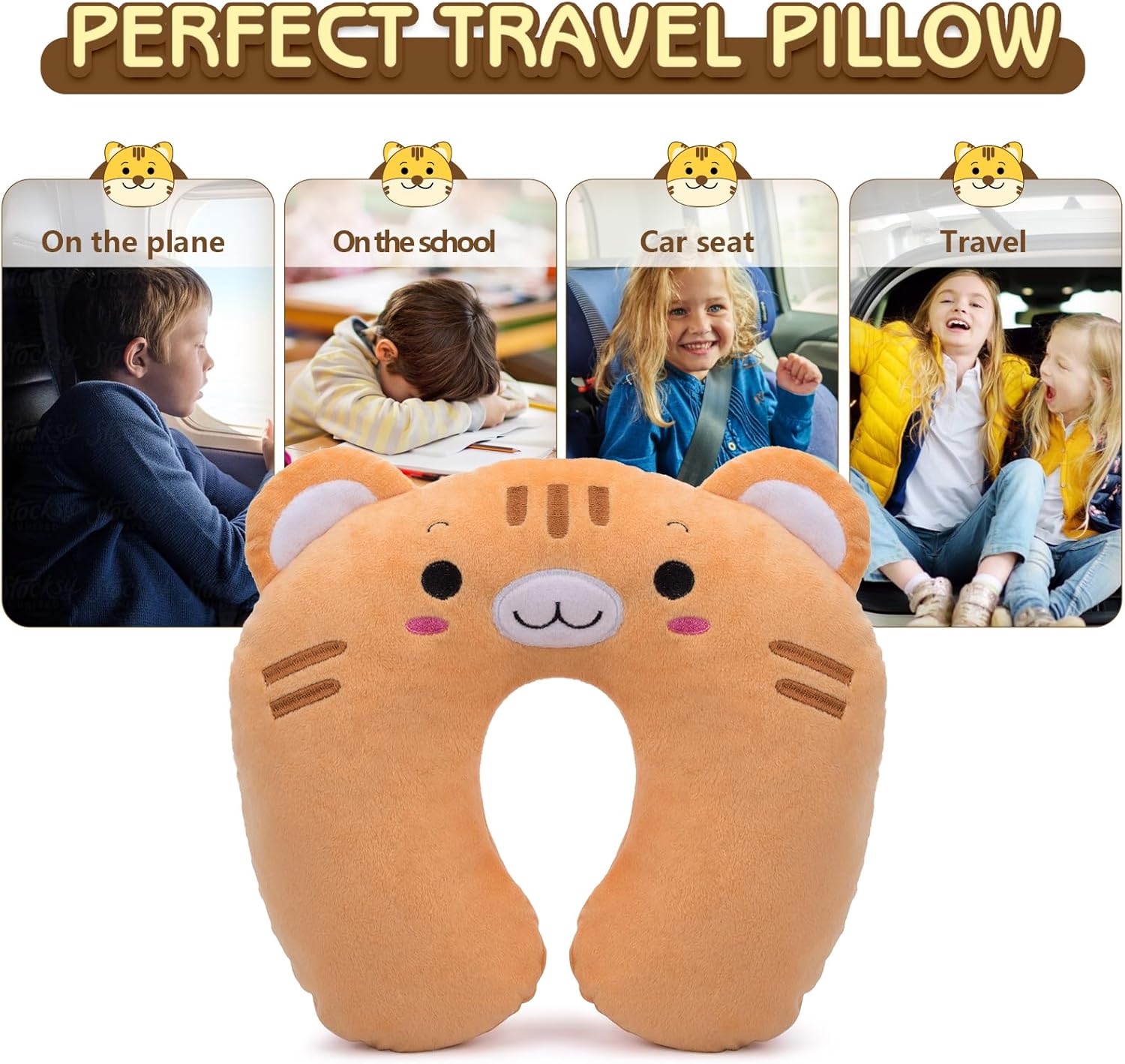 H HOMEWINS Travel Pillow for Kids,Cute Animal Neck Pillow for Boys Girls,Soft Neck Head Chin Support Pillow,Travel Accessories for Airplane, Car, Train,Recline(Cute Tiger)