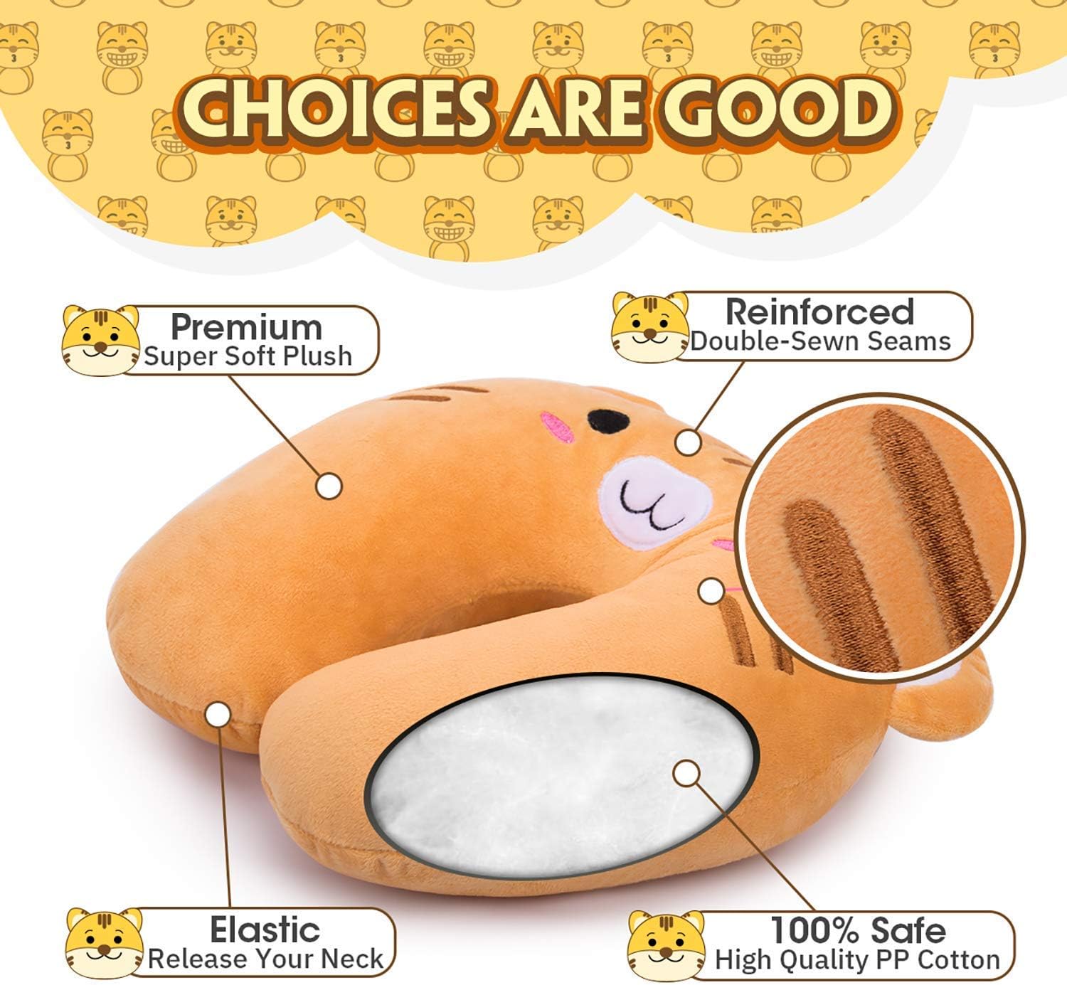 H HOMEWINS Travel Pillow for Kids,Cute Animal Neck Pillow for Boys Girls,Soft Neck Head Chin Support Pillow,Travel Accessories for Airplane, Car, Train,Recline(Cute Tiger)