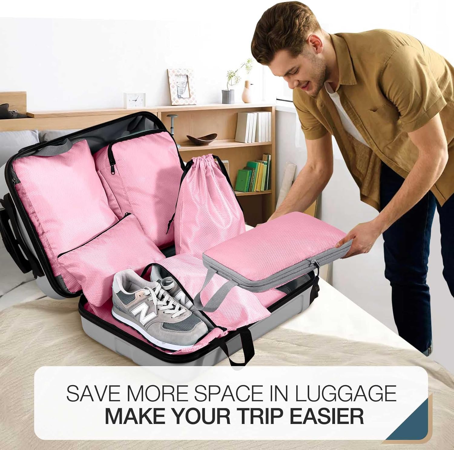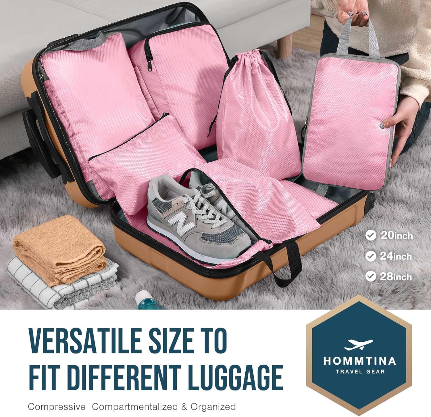 Hommtina Compression Packing Cubes for Suitcases, 7 Set Travel Organizer Cubes for Women (Light powder)