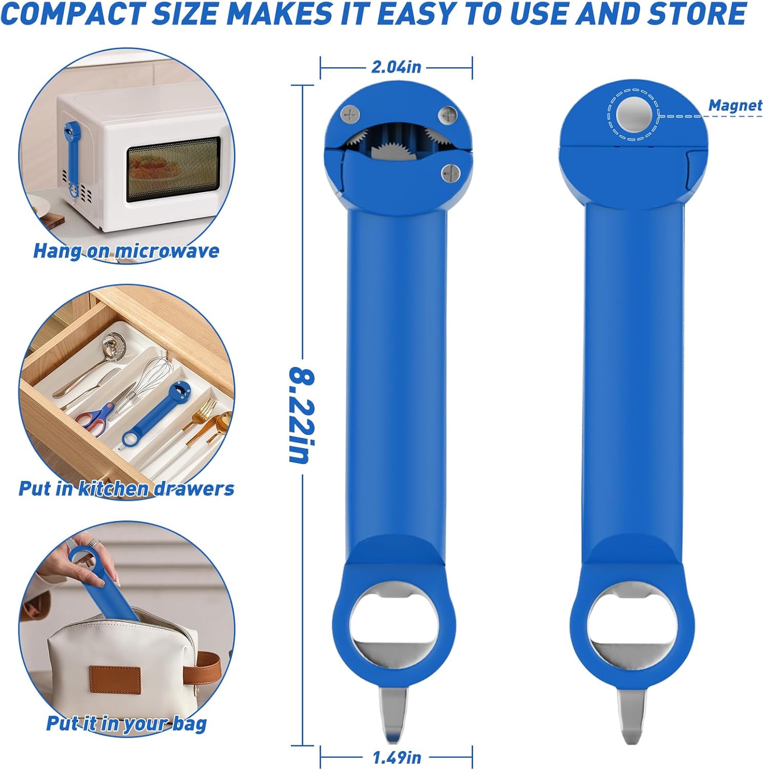 Jar Opener Bottle Opener for Seniors with Arthritis, Multi Retractable Magnetic Can Opener, Jar Grippers for Opening Jars, Kitchen Gadgets for Weak Hands and Senior Arthritis (Blue)
