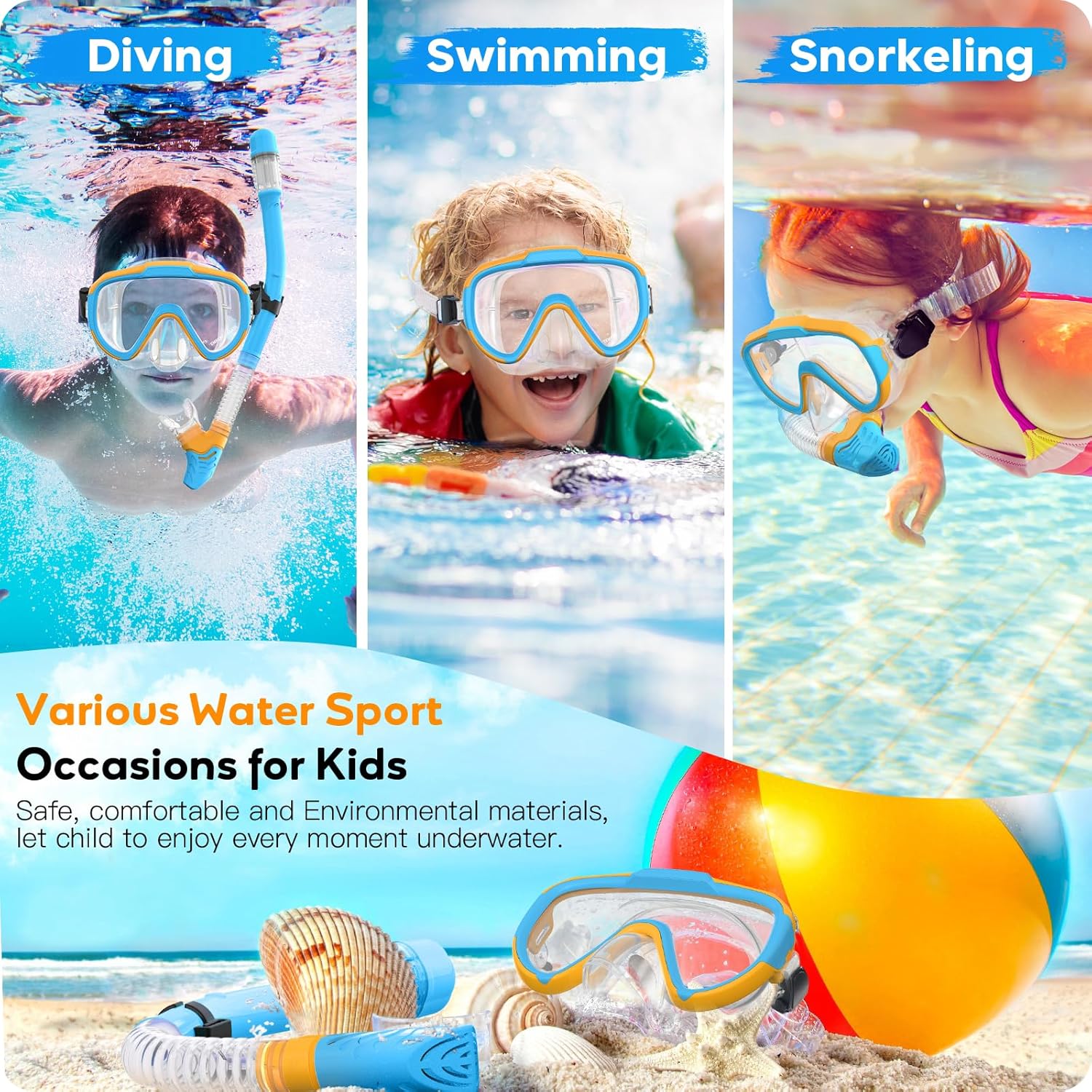 🥽ANTI-FOG TEMPERED GLASS & PANORAMIC VIEW – This snorkel goggle use (was upgraded with) scratch-resistant tempered glass lenses which gives extraordinary durability. With anti-fog coating, these diving masks offer an crystal clear unobstructed 180° panoramic view, allowing your kids to explore the breathtaking beauty of the underwater realm