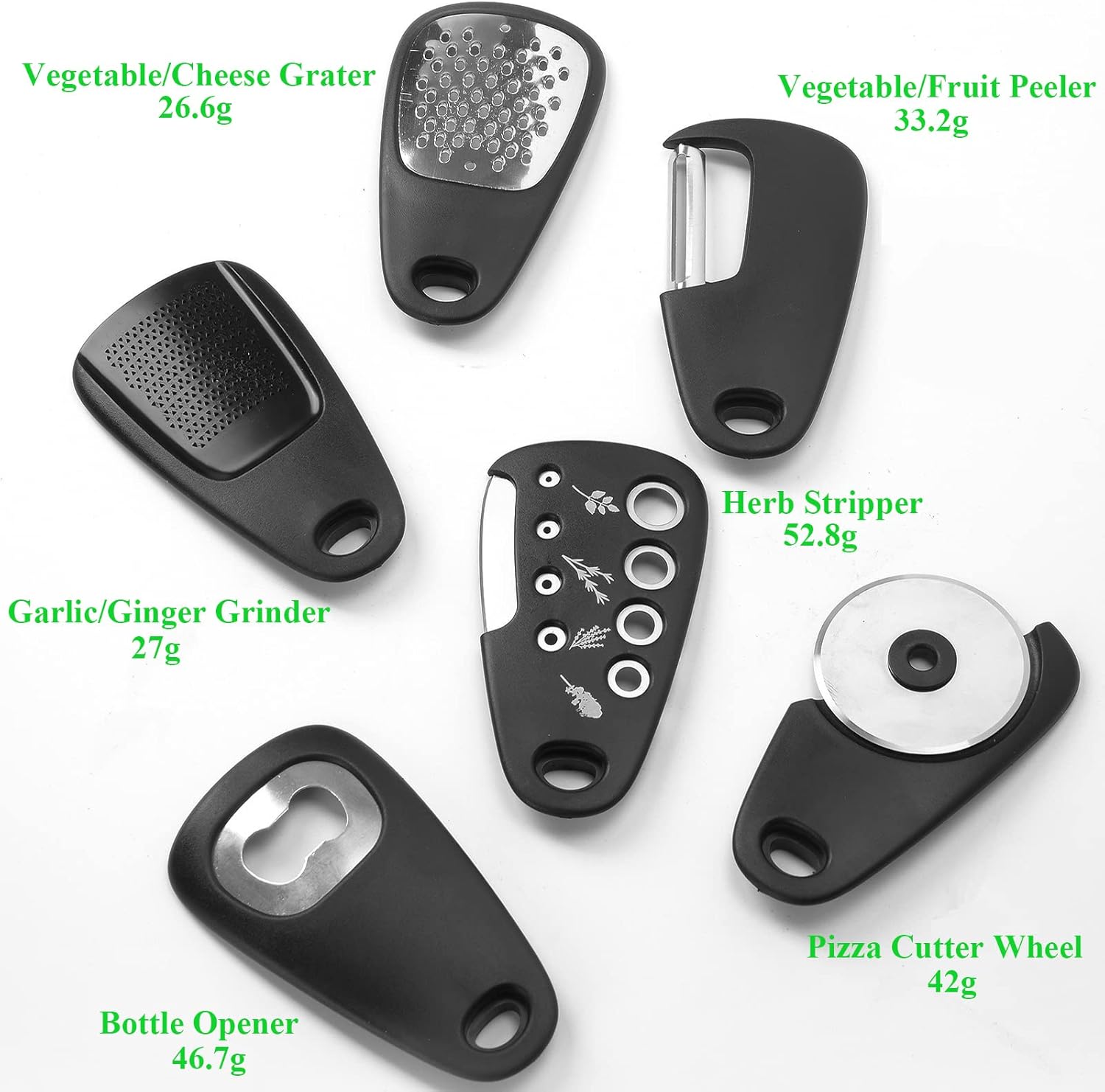 Kitchen Gadgets Set 6 Pieces, Space Saving Cooking Tools Kitchen Accessories-Garlic/Ginger Grinder, Cheese Grater, Vegetable/Fruit Peeler, Pizza Cutter, Herb Stripper, Bottle Opener, Gadgets Gift Set
