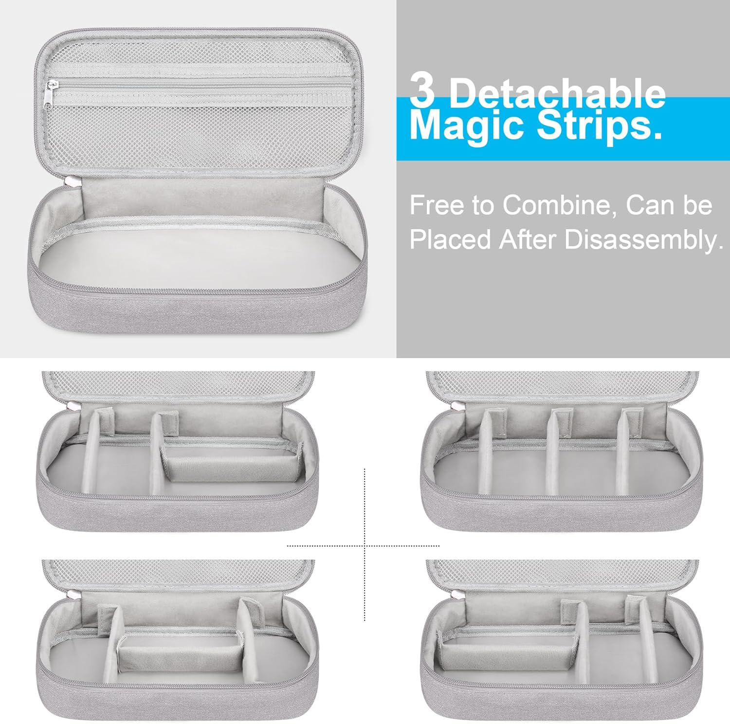 CUSTOMIZABLE LARGE STORAGE SPACE: This electronic travel Organizer comes with 3 Magic Strip Dividers, allowing you to freely size or position the bottom compartment for flexible or optimal Storage Space for your charger, MacBook power adapter, hard drive, power bank…..; Premium Mesh Pockets for cables, cords, hard drives; This Electronics Travel Packing Organizer will keep every item organized and easily findable, no worry about the mess and tangle anymore.