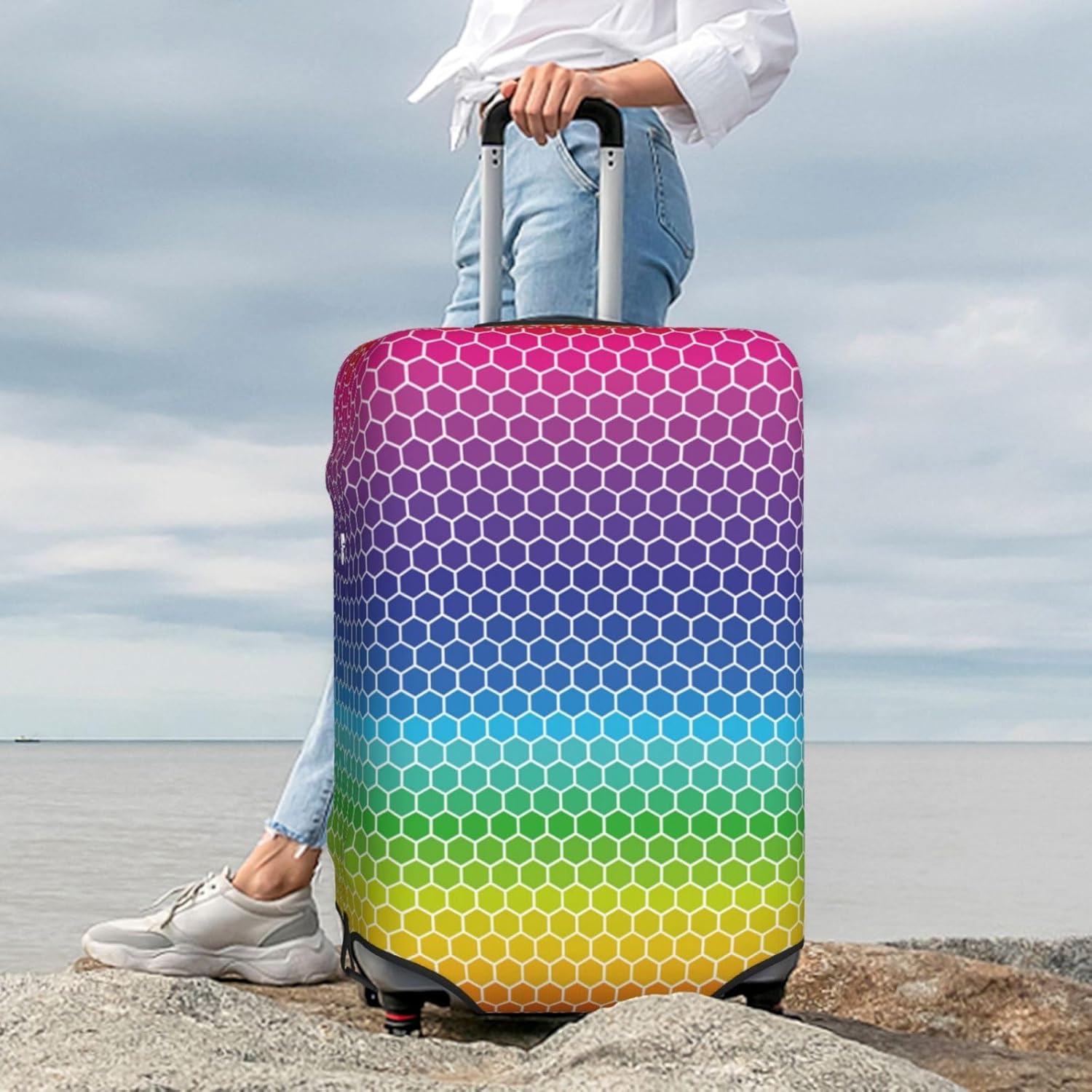 luggage cover protector Fashion suitcase covers for luggage Washable suitcase cover Anti-scratch lightweight carry on luggage covers Fits 22-24in Baggage Colored Honeycombs Rainbow print