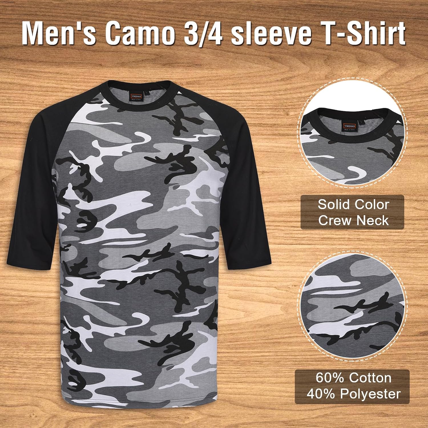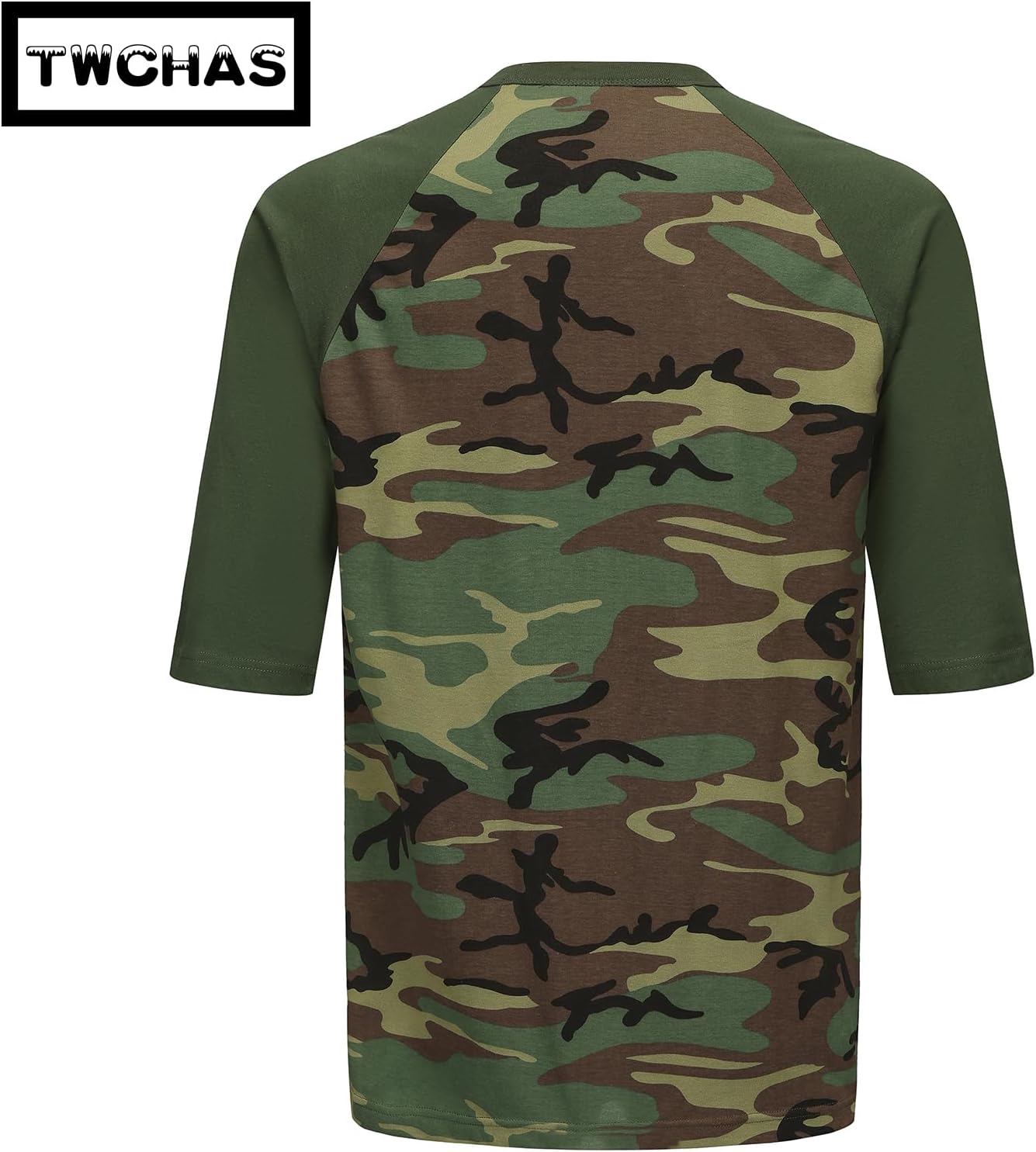 Men’s Camo 3/4 Sleeve T-Shirt, Cotton Polyester Blend T-Shirt, Lightweight Men’s Camouflage Shirt for Outdoor Adventures