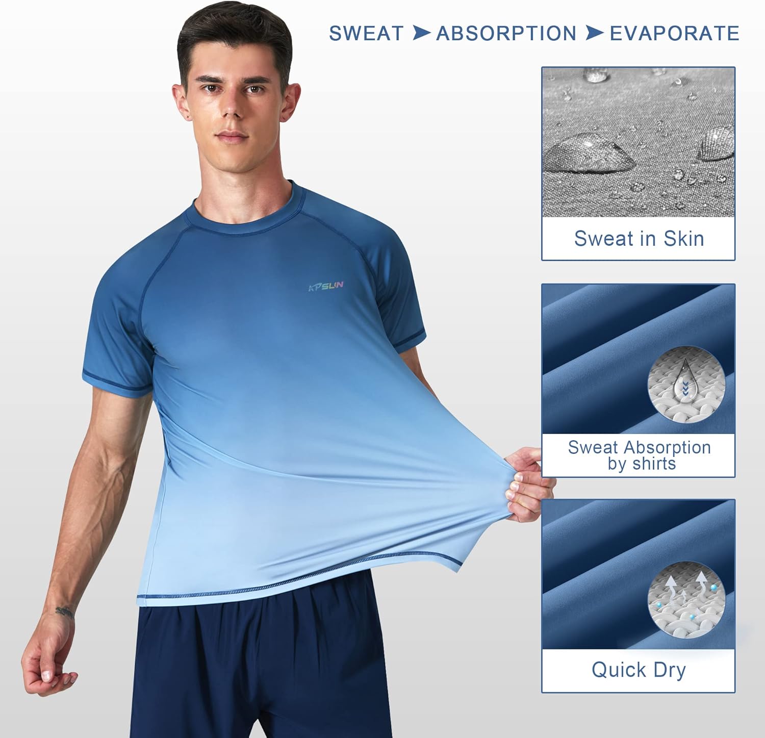Mens Swim Shirts UPF 50+ Sun Protection Quick Dry SPF Rash Guard Outdoor Beach Fishing T Shirts